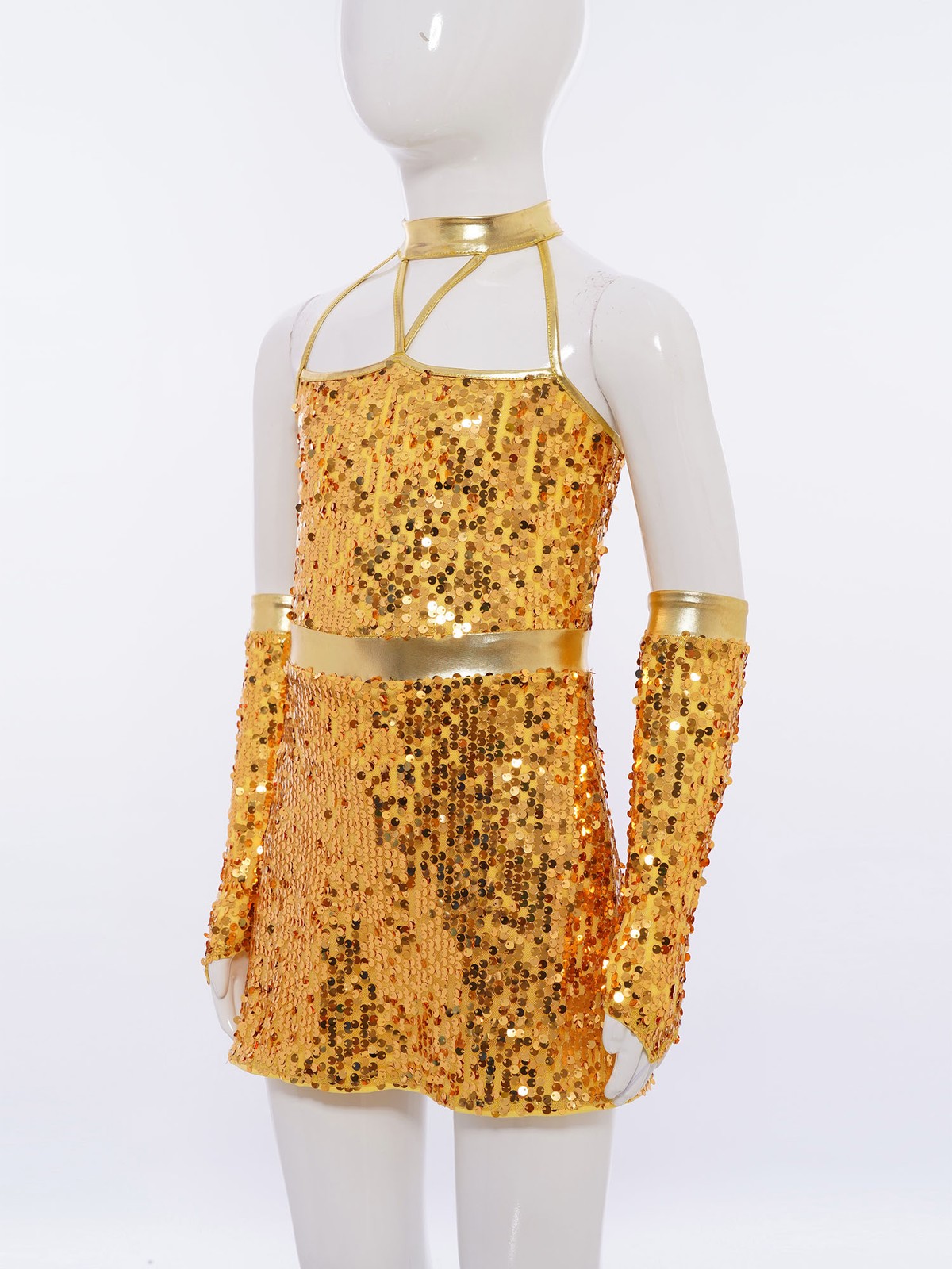 Kids Girls Dancewear Ballroom Dress Cocktail Dance Dress Stage Costume Sequins