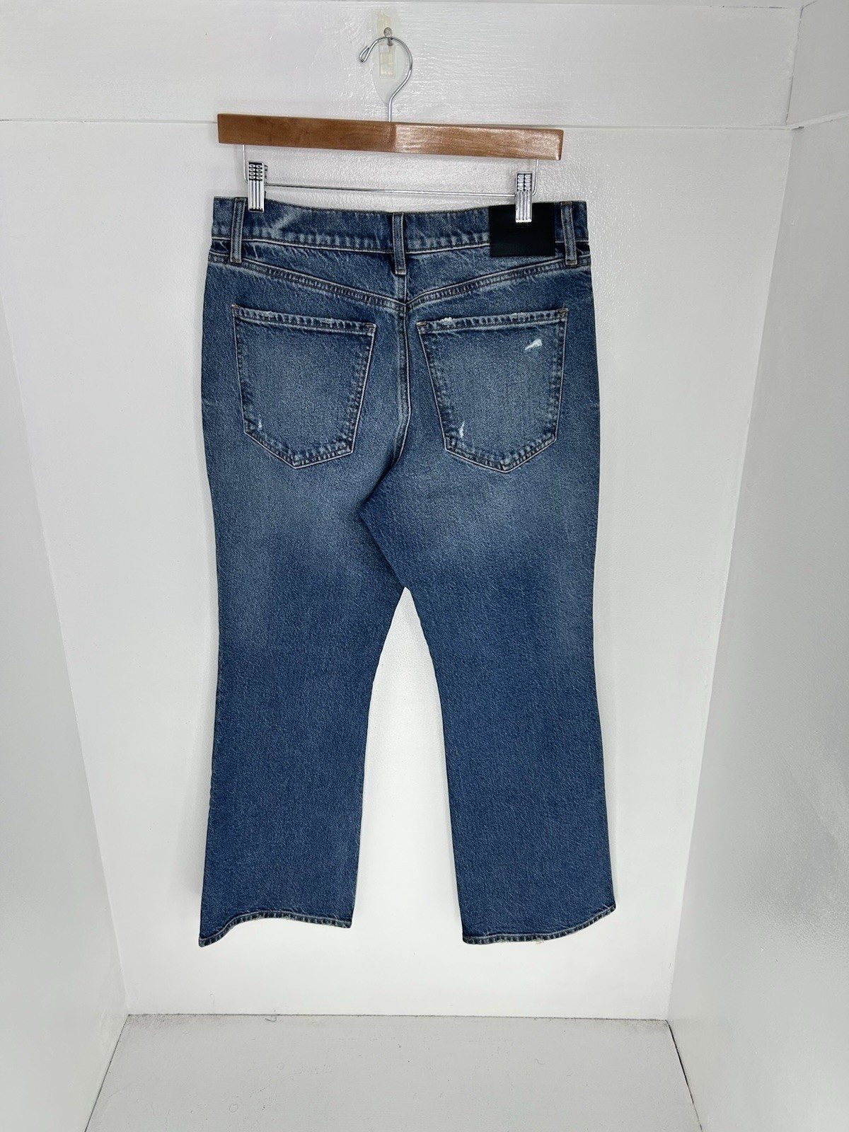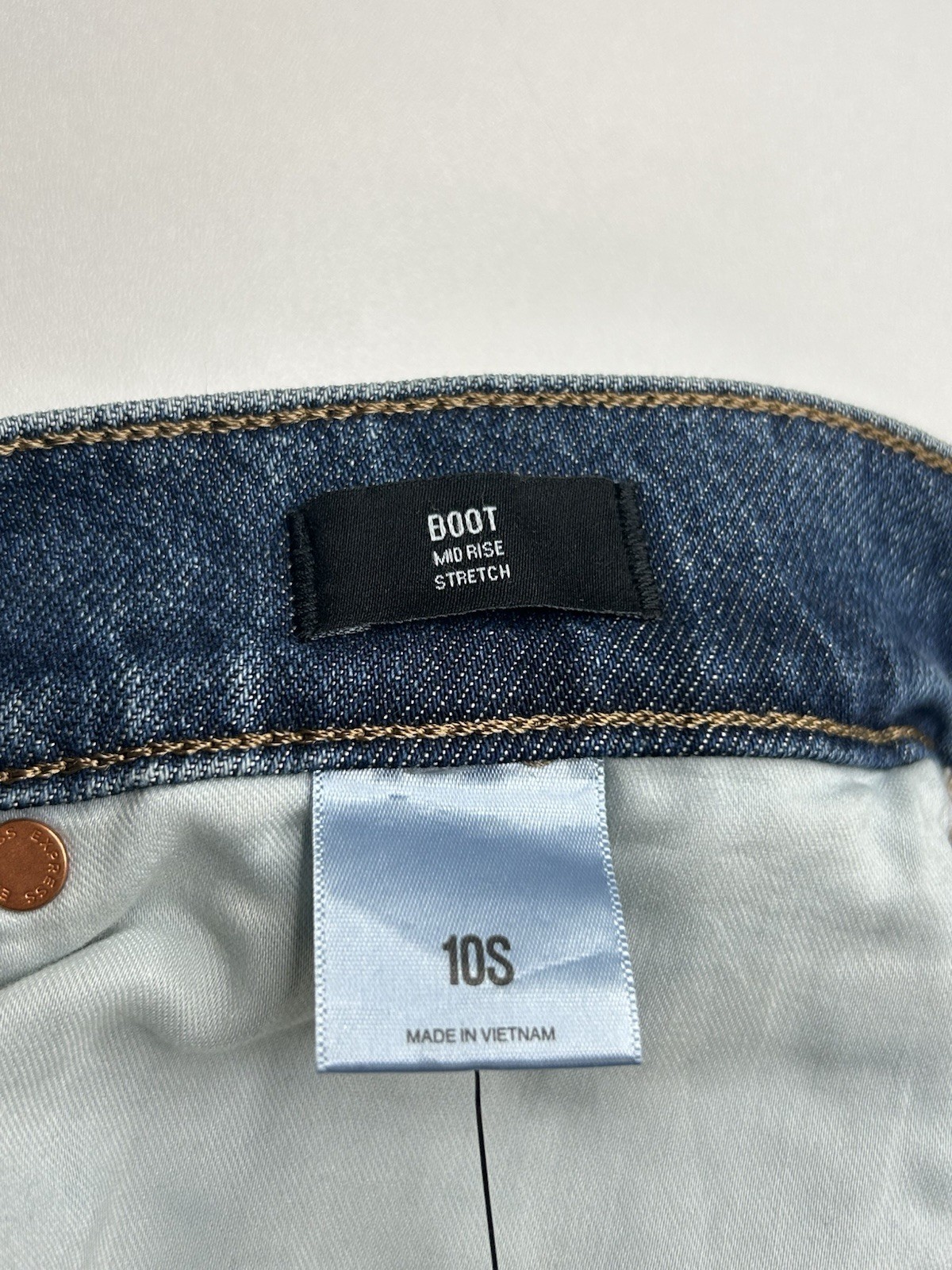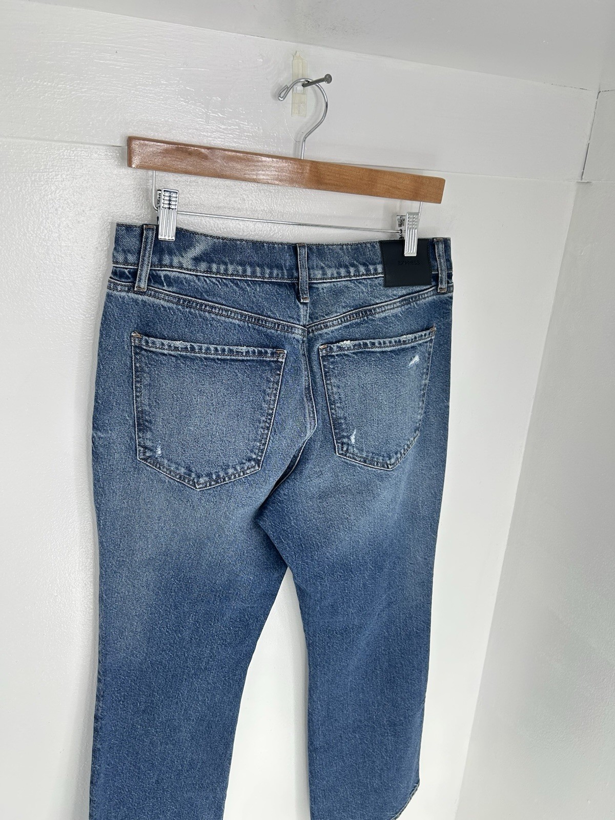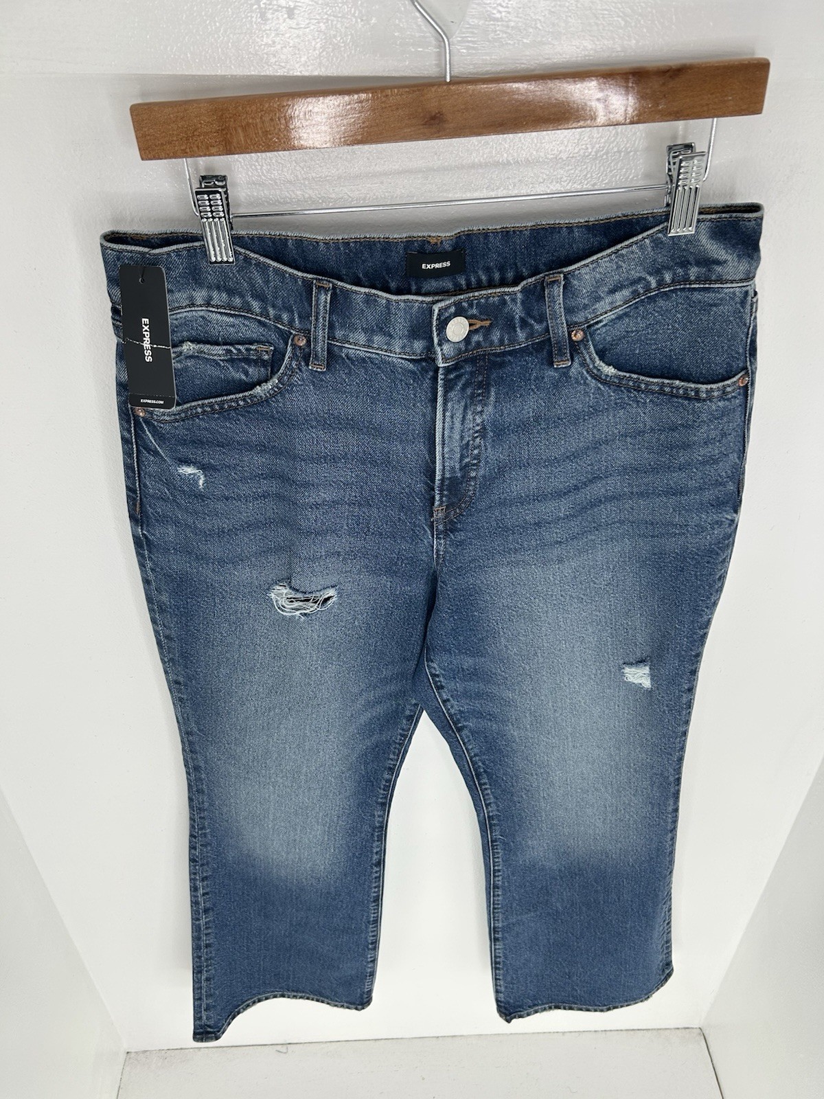 как выглядит Express NWT Boot Cut Mid Rise Stretch Jeans Size 10S Distressed Denim 31x28.5 фото