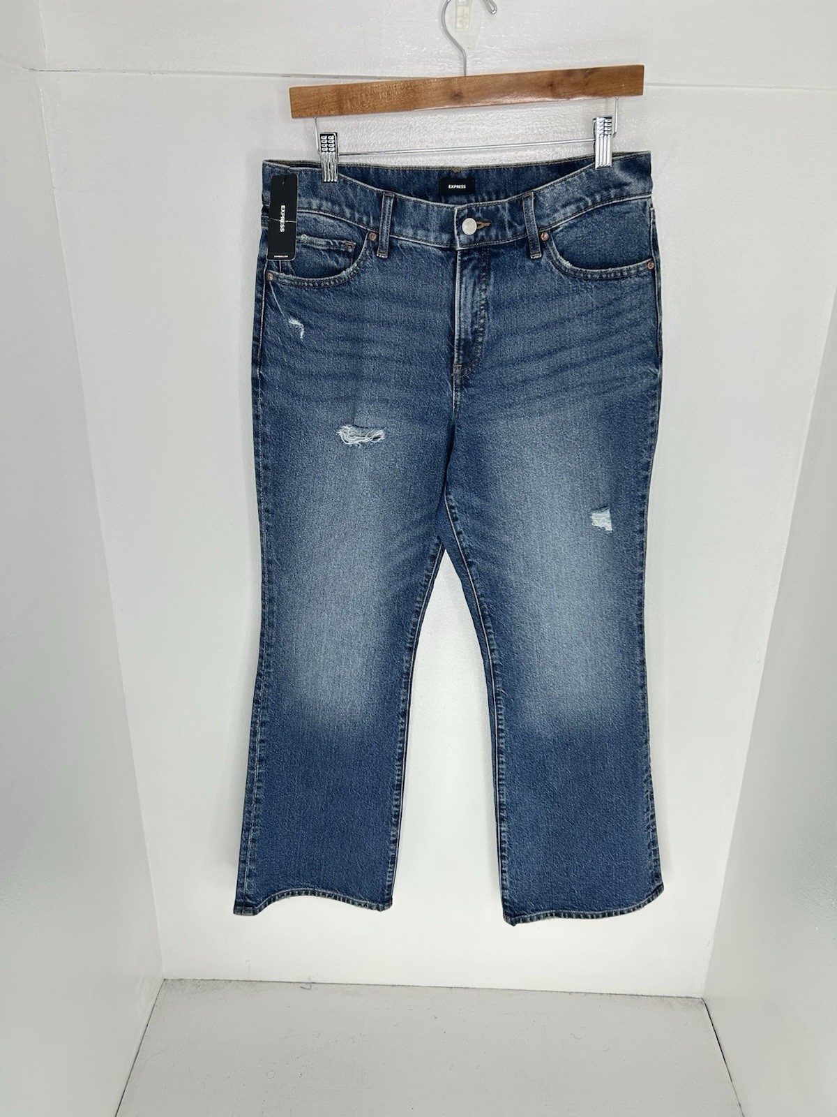 Express NWT Boot Cut Mid Rise Stretch Jeans Size 10S Distressed Denim 31x28.5