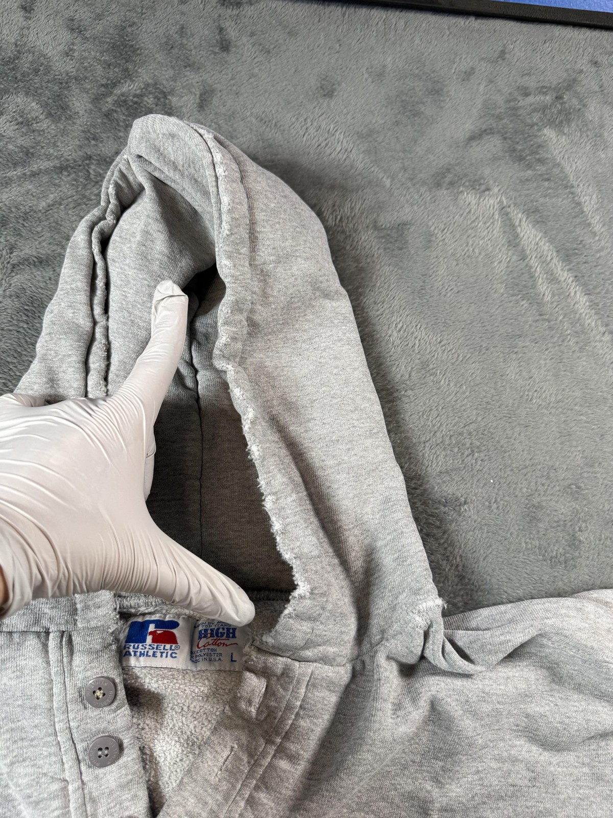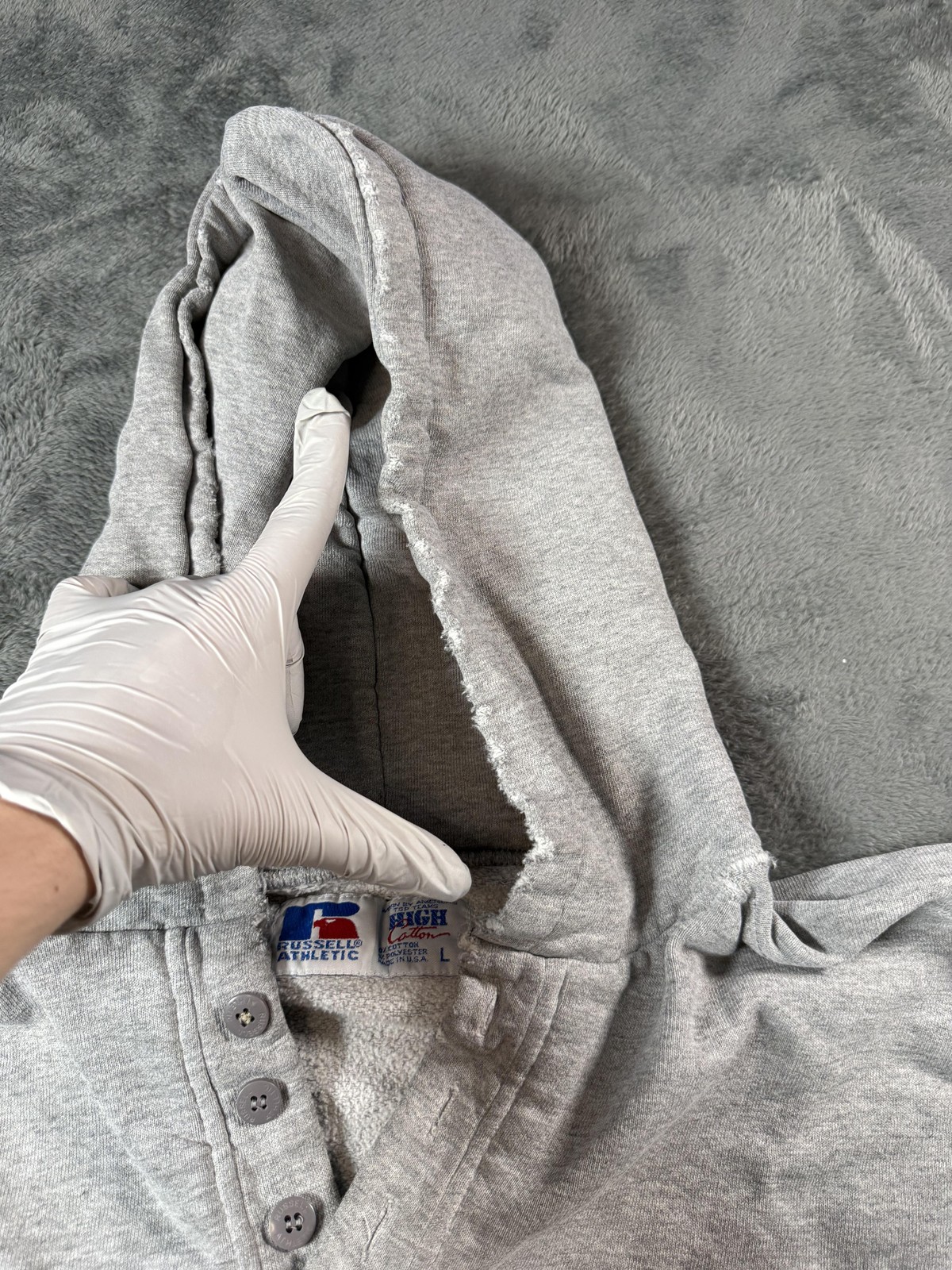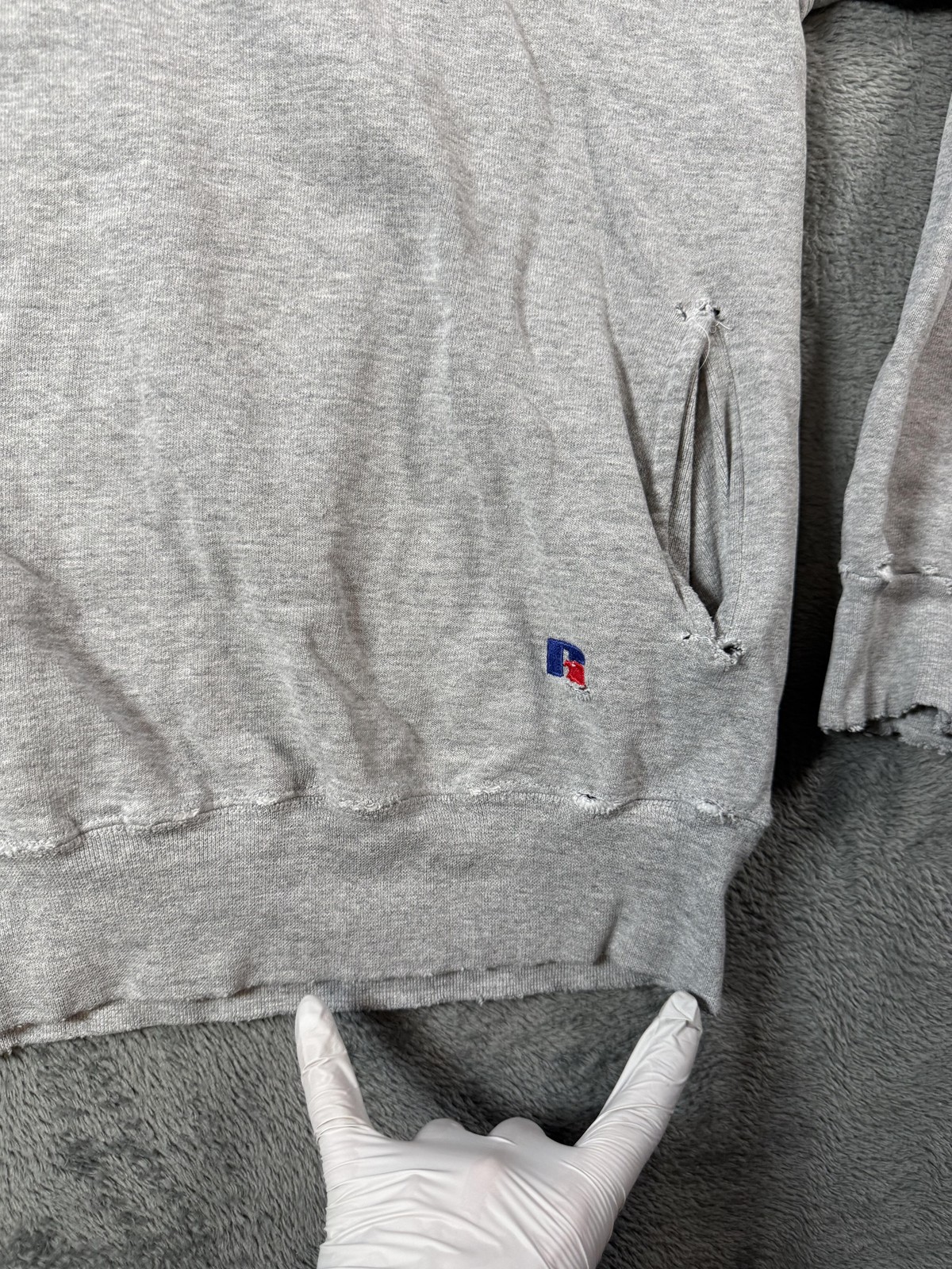 как выглядит Vintage Russell Athletic Hoodie Mens Large Gray Nice Distressing USA 90s Boho фото