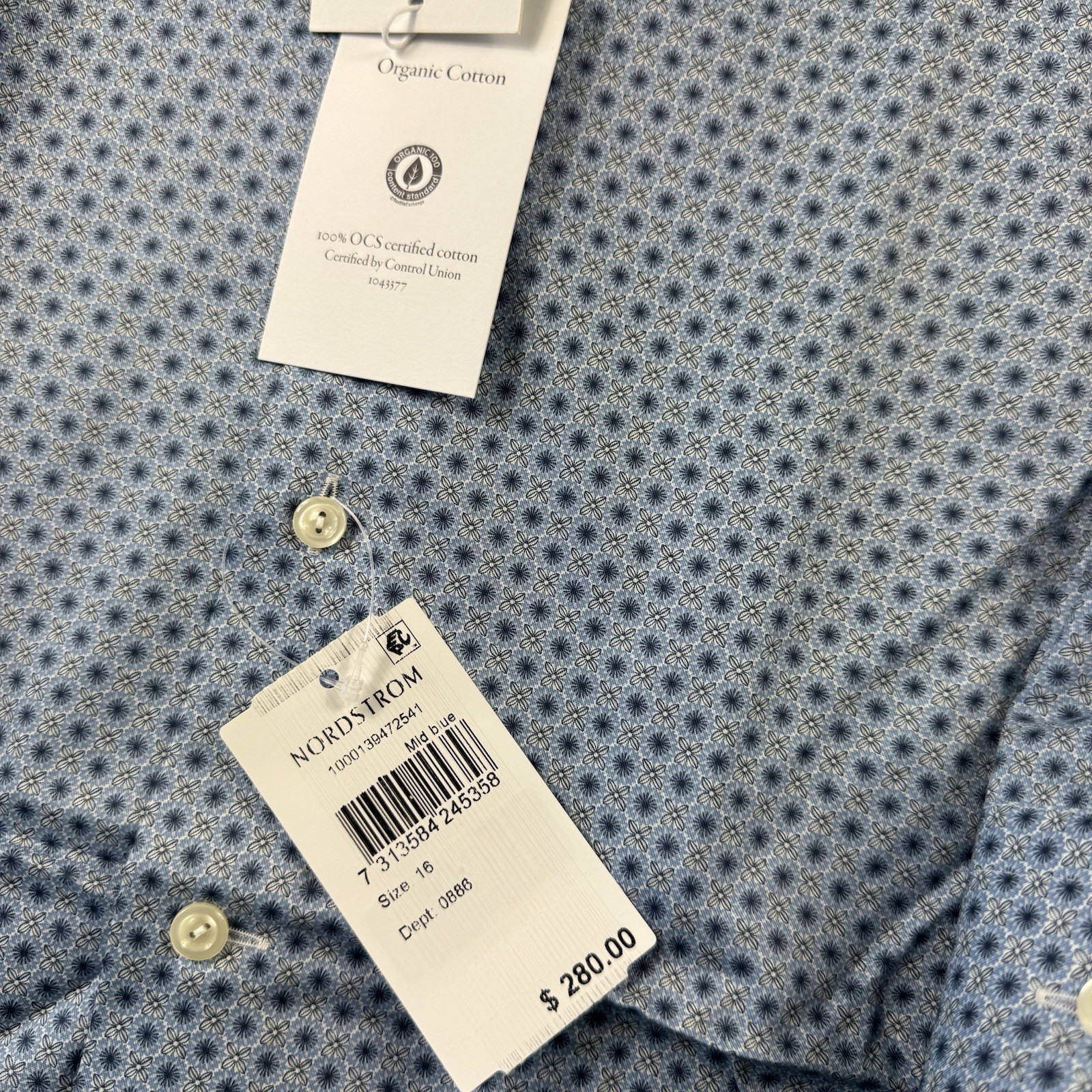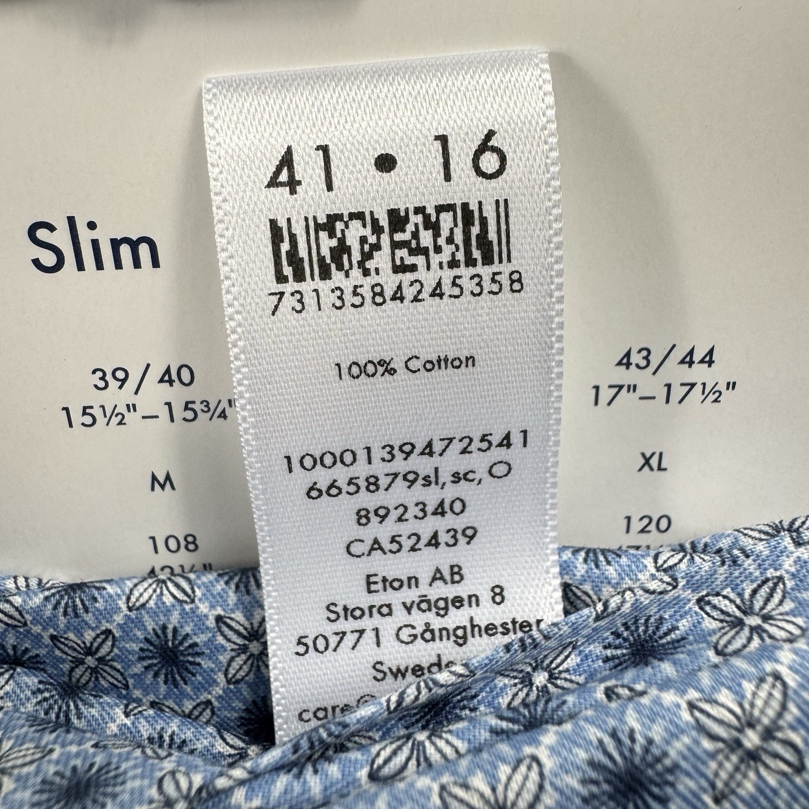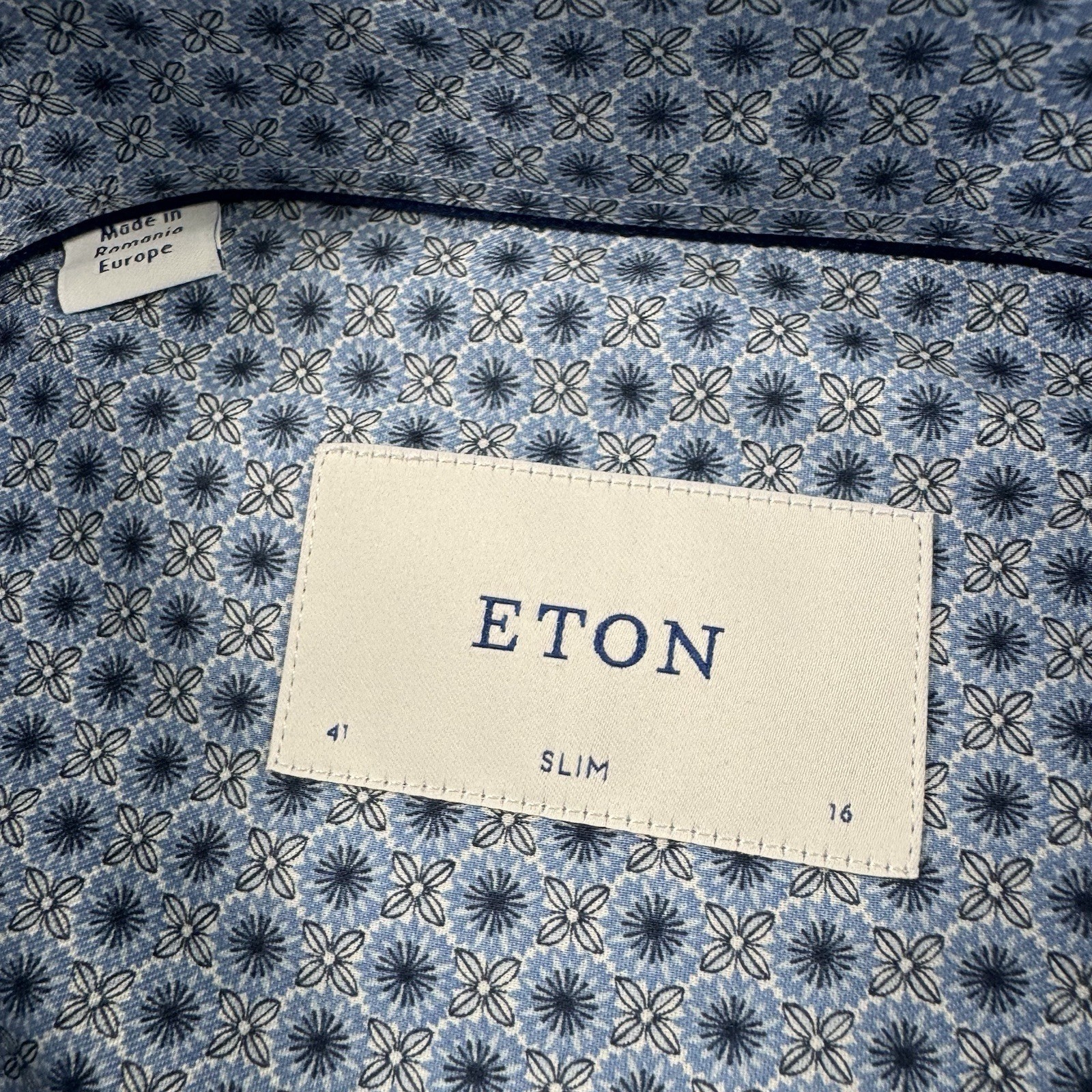 ETON Light Blue Floral AOP Current Cotton Slim Button Front 16/41 NWT