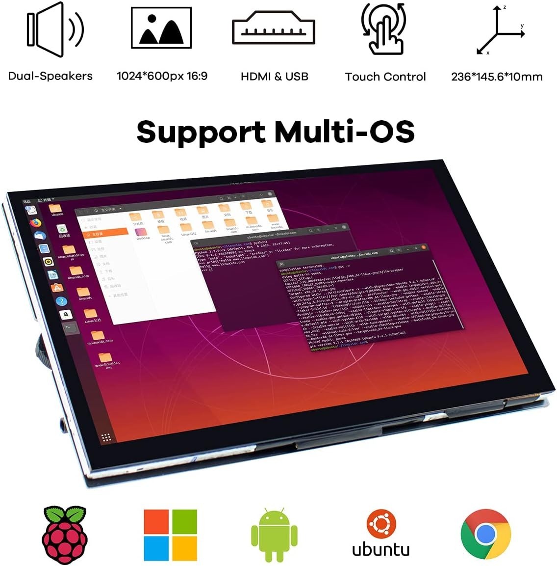 7 Inch IPS LCD Touch Screen Raspberry Pi Monitor Display 1024 600 Capacitive ...