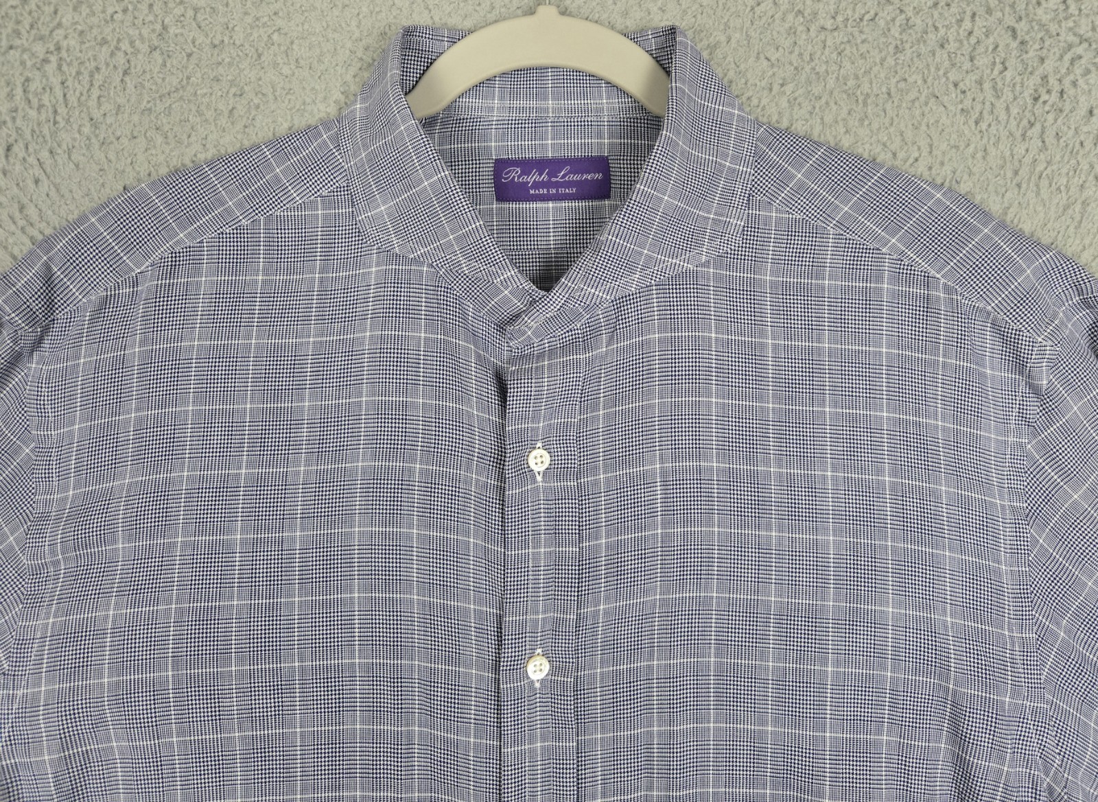 Ralph Lauren Purple Label Glen Plaid Dress Shirt Brushed Cotton Men's Size 17