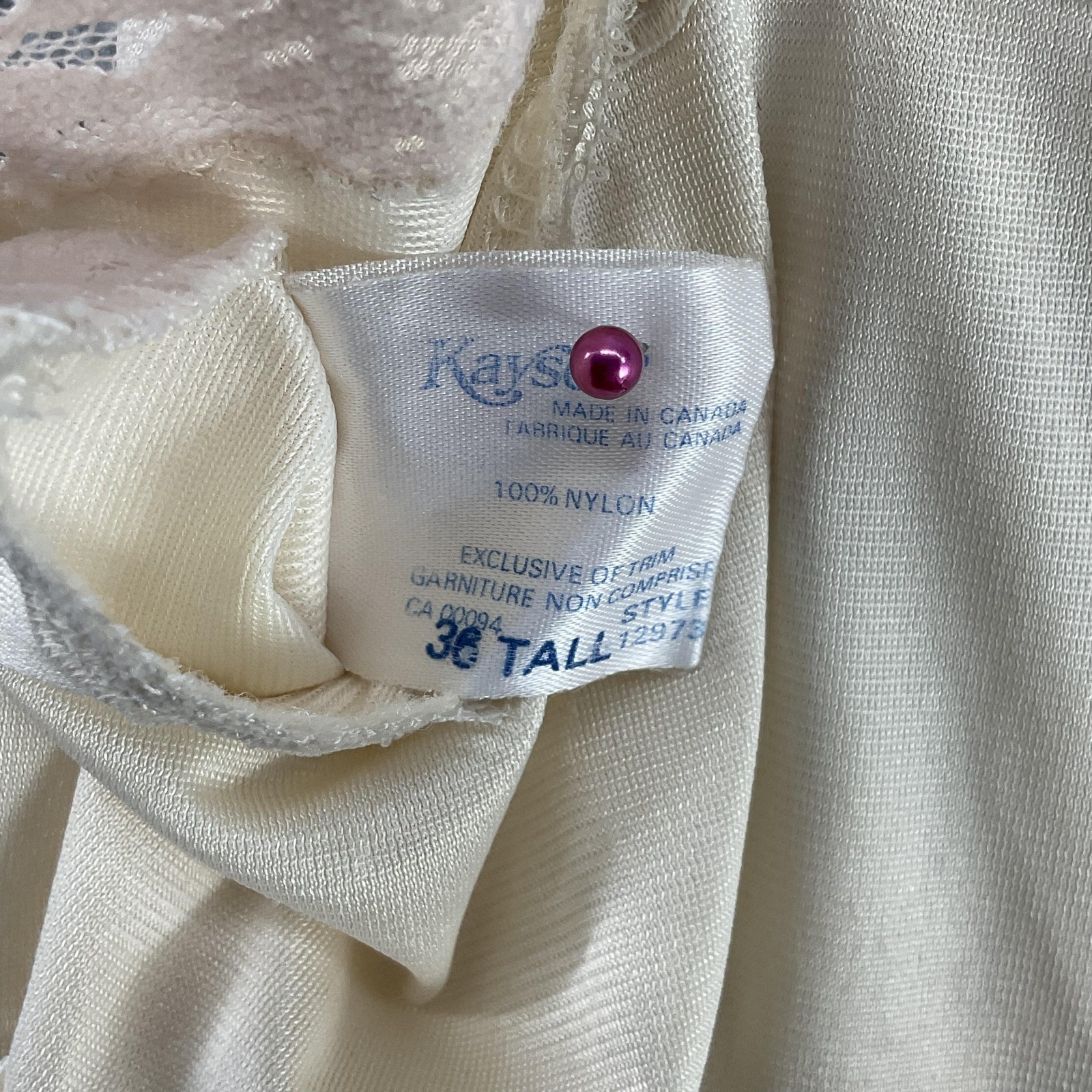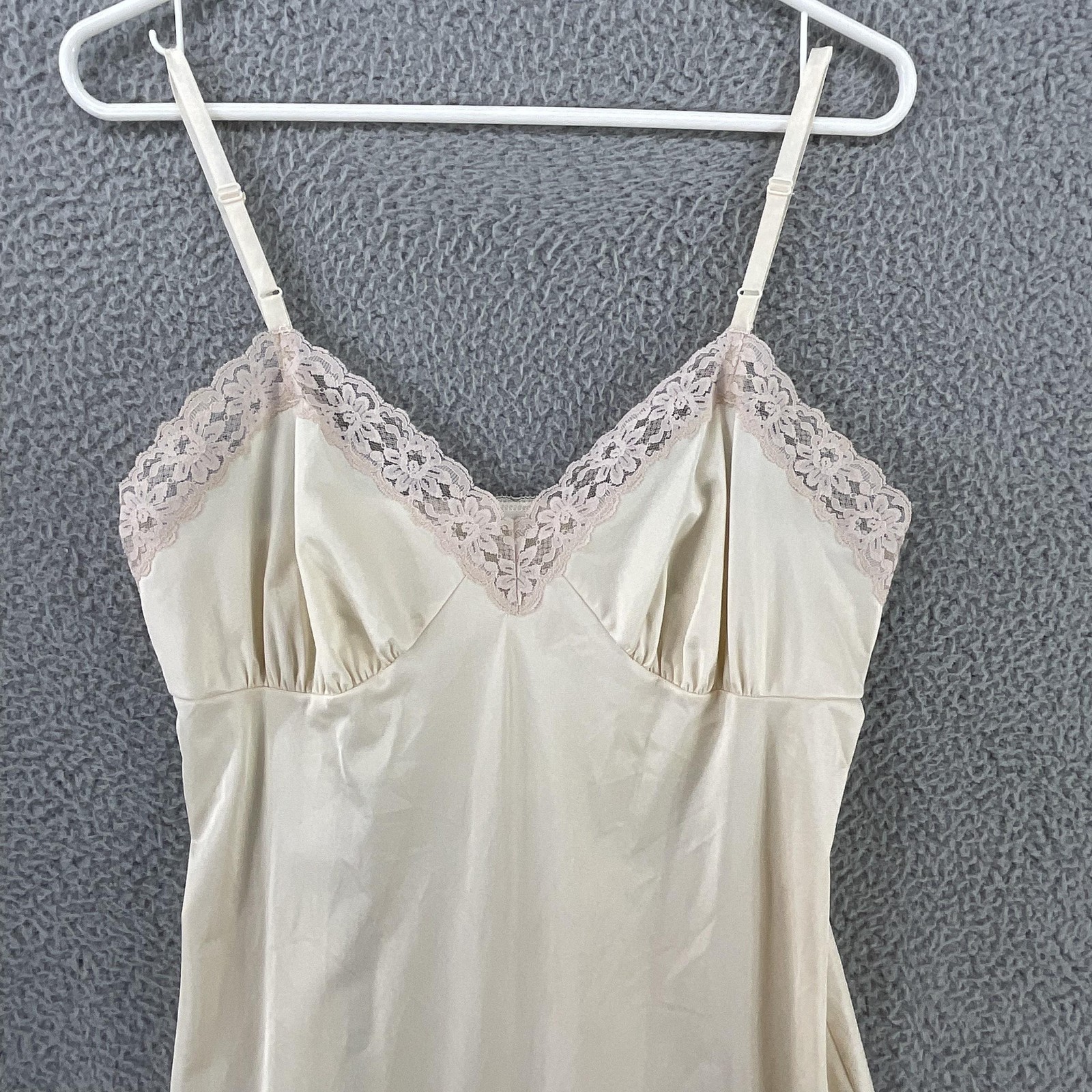 как выглядит Vintage Kayser Slip Womens L Tall White Nylon Lace Trim Full Lingerie 80s фото