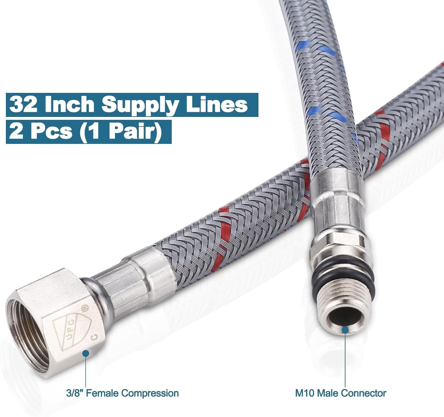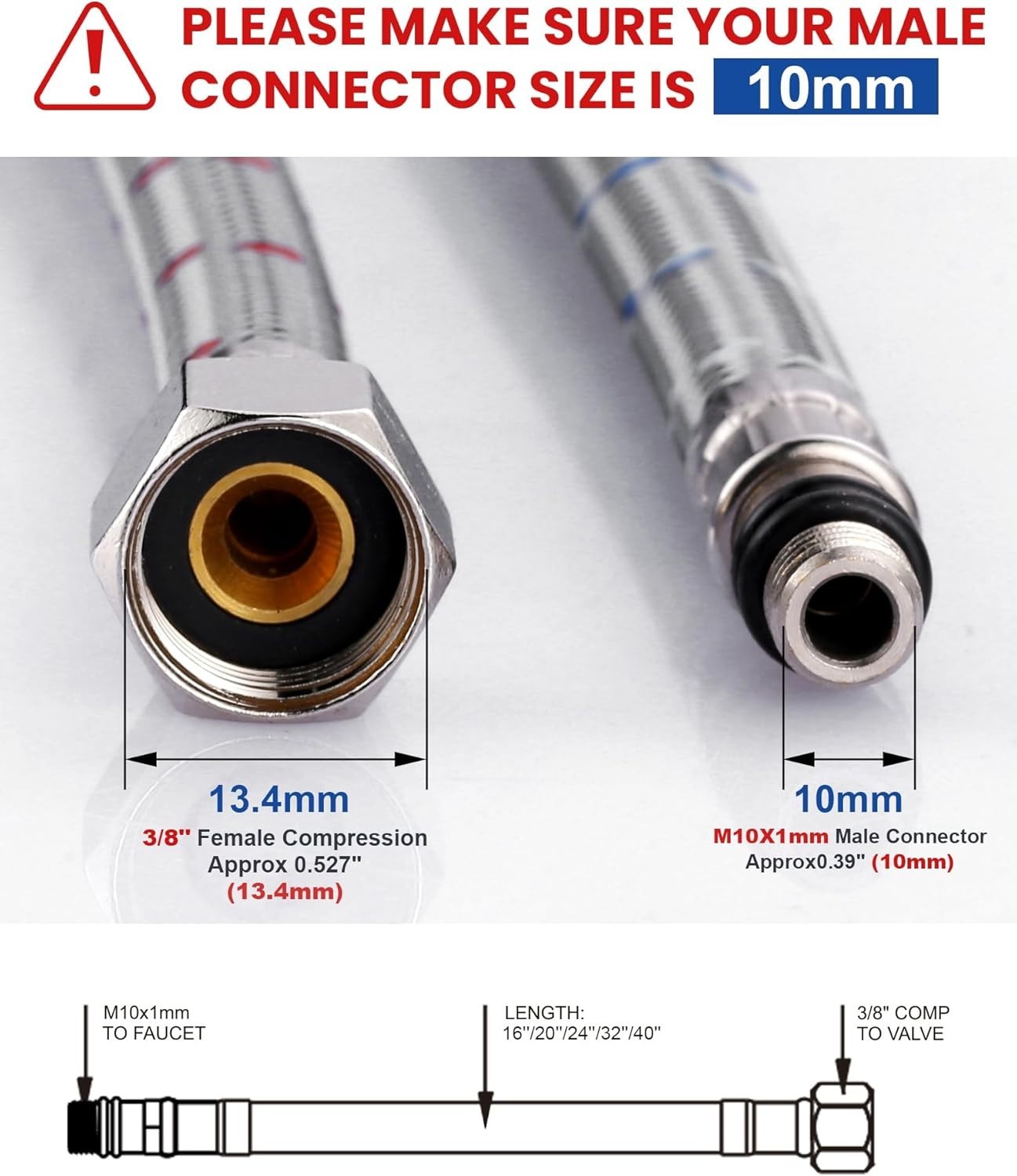 40 Length Faucet Supply Line, Bathroom Kitchen Faucet Lines Braided Nylon
