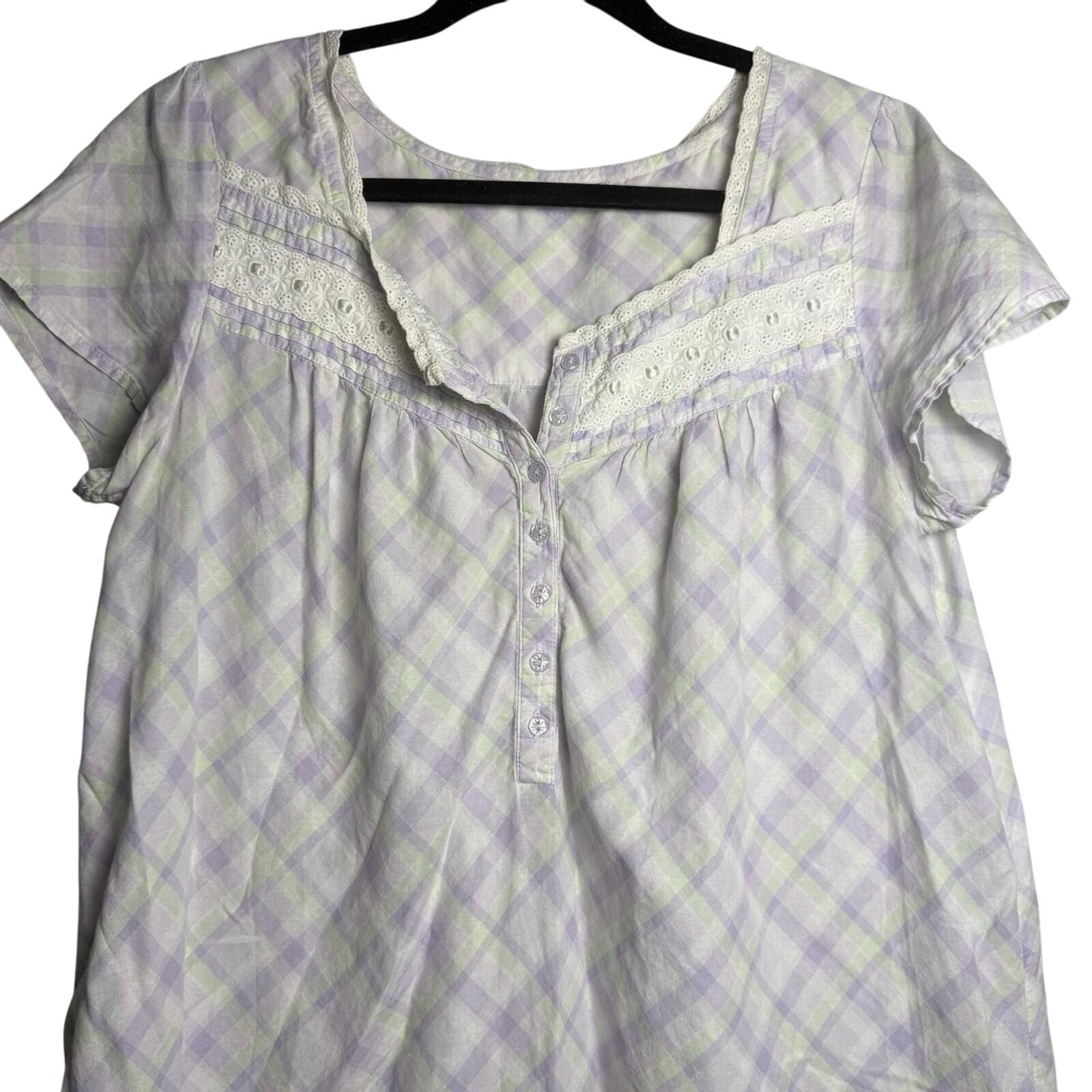 Vintage Women's Striped Plaid Purple Pink Green House Coat Robe Duster LARGE/XL