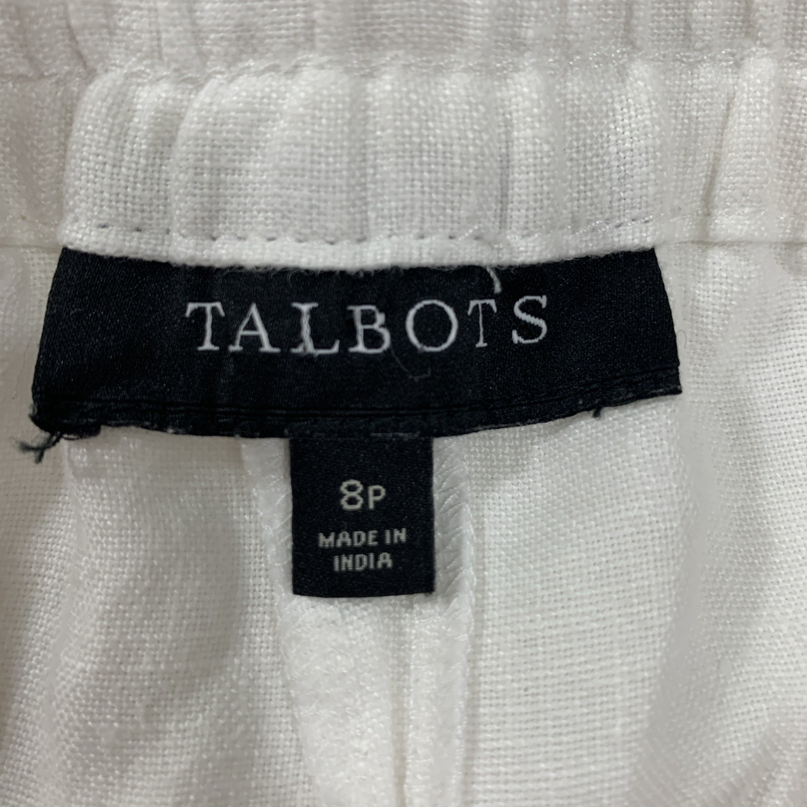 Talbots Linen Pants White Pull On Draw String Women's Size 8