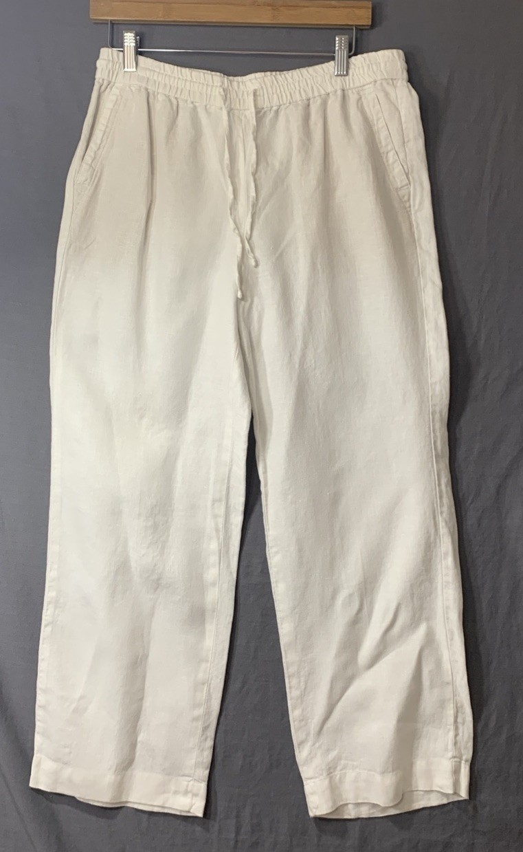 как выглядит Talbots Linen Pants White Pull On Draw String Womens Size 8 фото