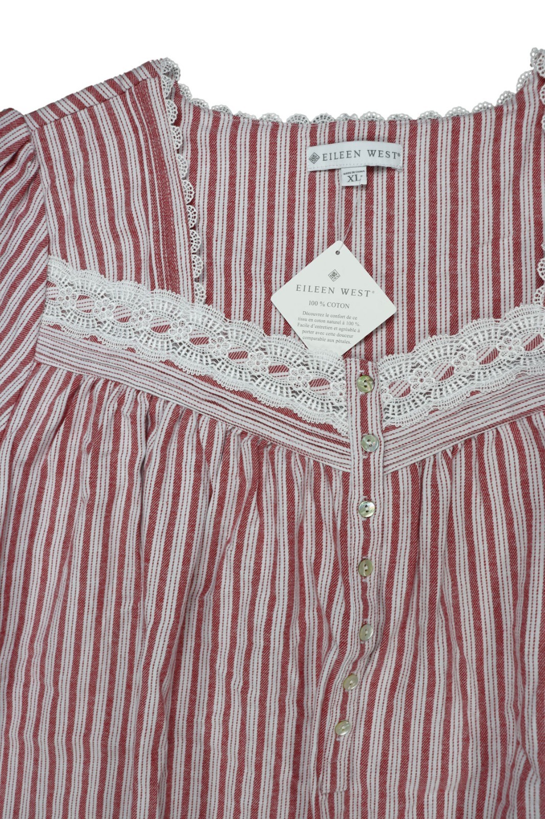 как выглядит Eileen West Long Sleeve Striped Button-Front Lace Accent Womens Nightgown XL NWT фото