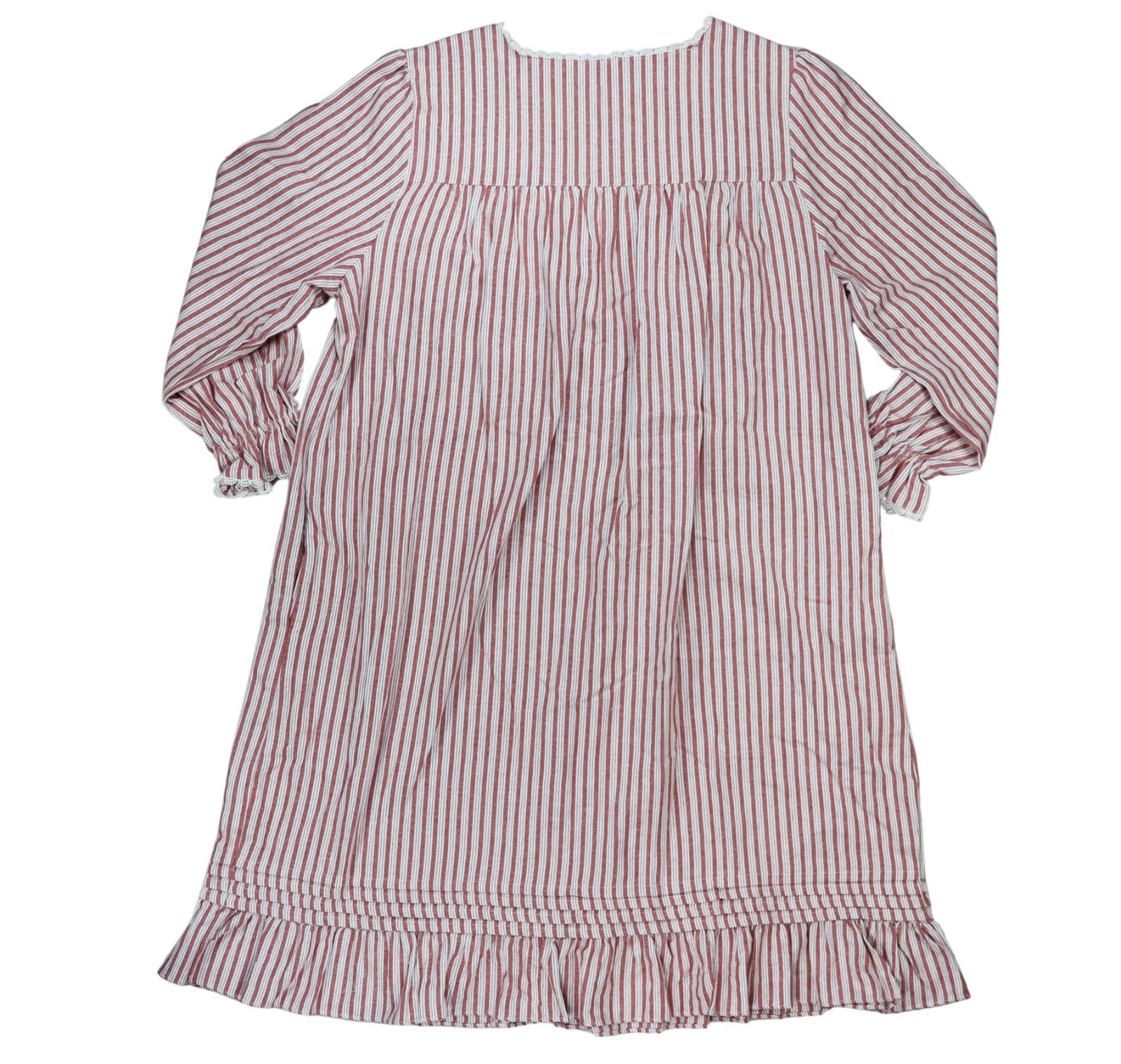 Eileen West Long Sleeve Striped Button-Front Lace Accent Womens Nightgown XL NWT