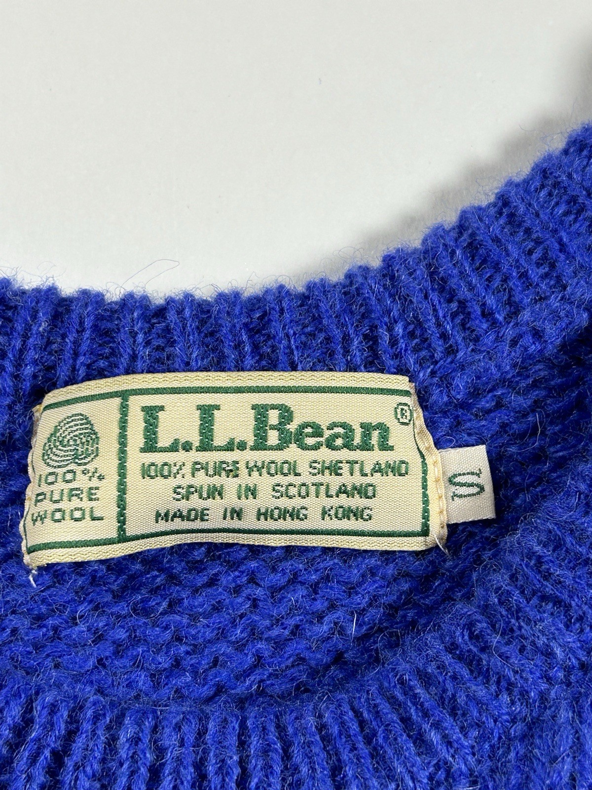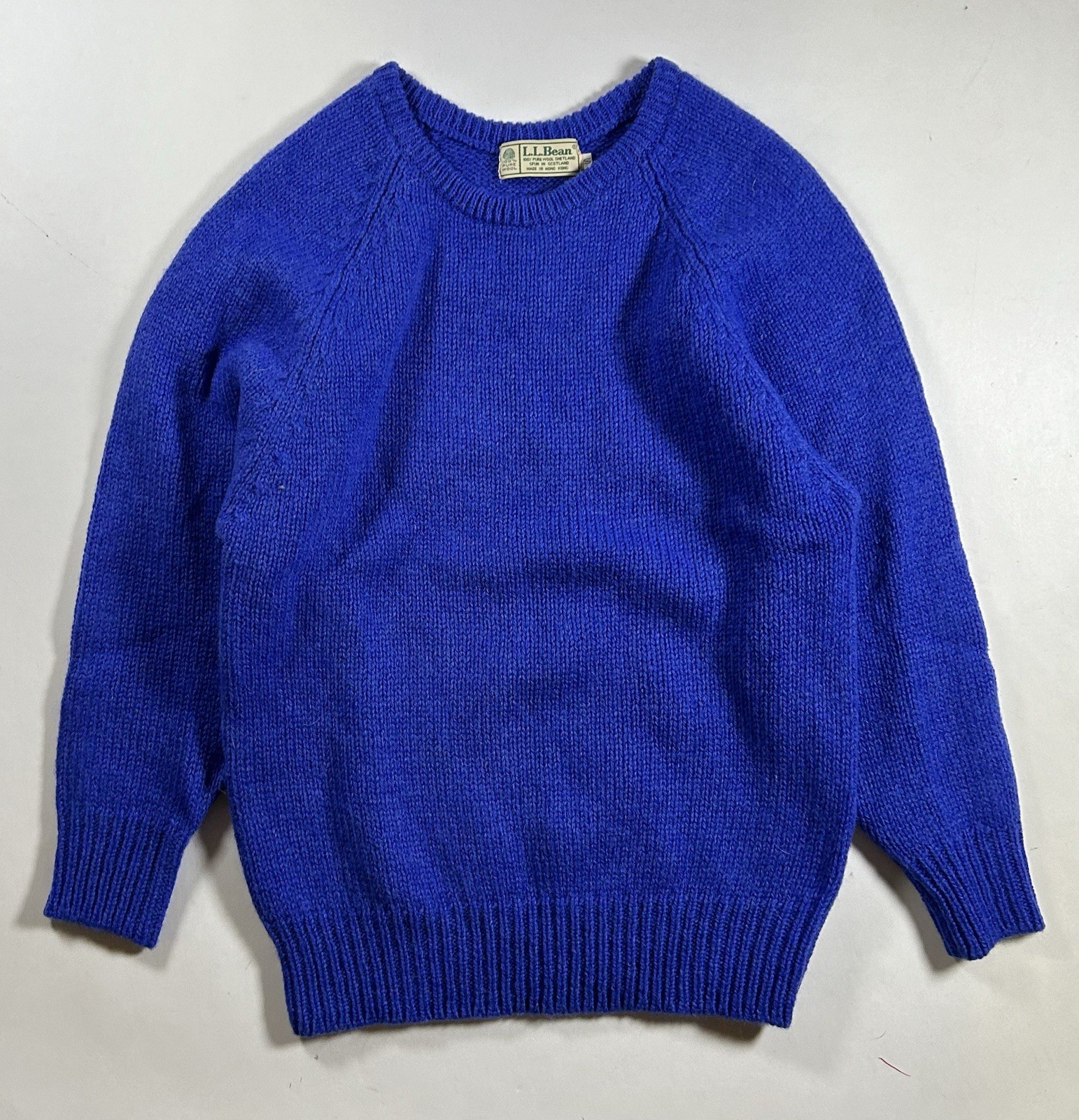 Vintage L.L. Bean Sweater Women Small Blue Knit Crewneck Shetland Pure Wool Nice