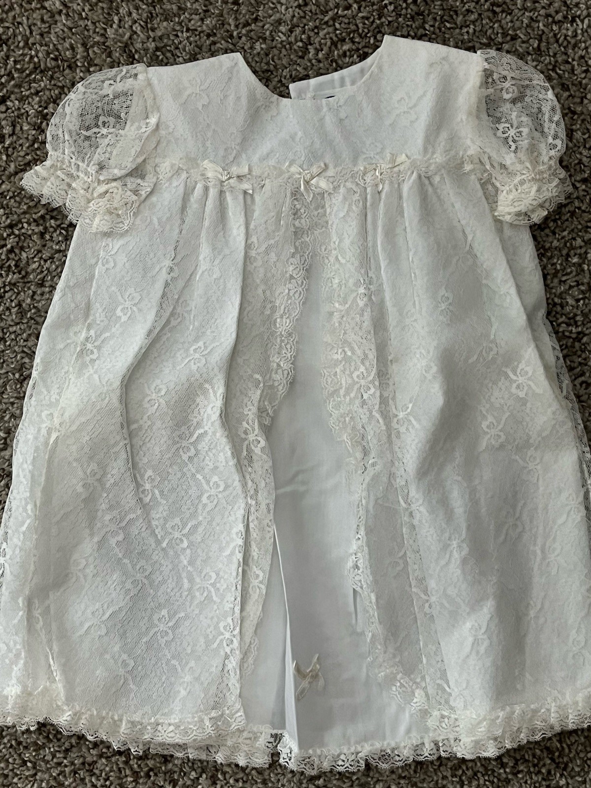 как выглядит Vintage 1970s Christening Baptism Gown Dress Bonnet Lace In Original Packaging фото