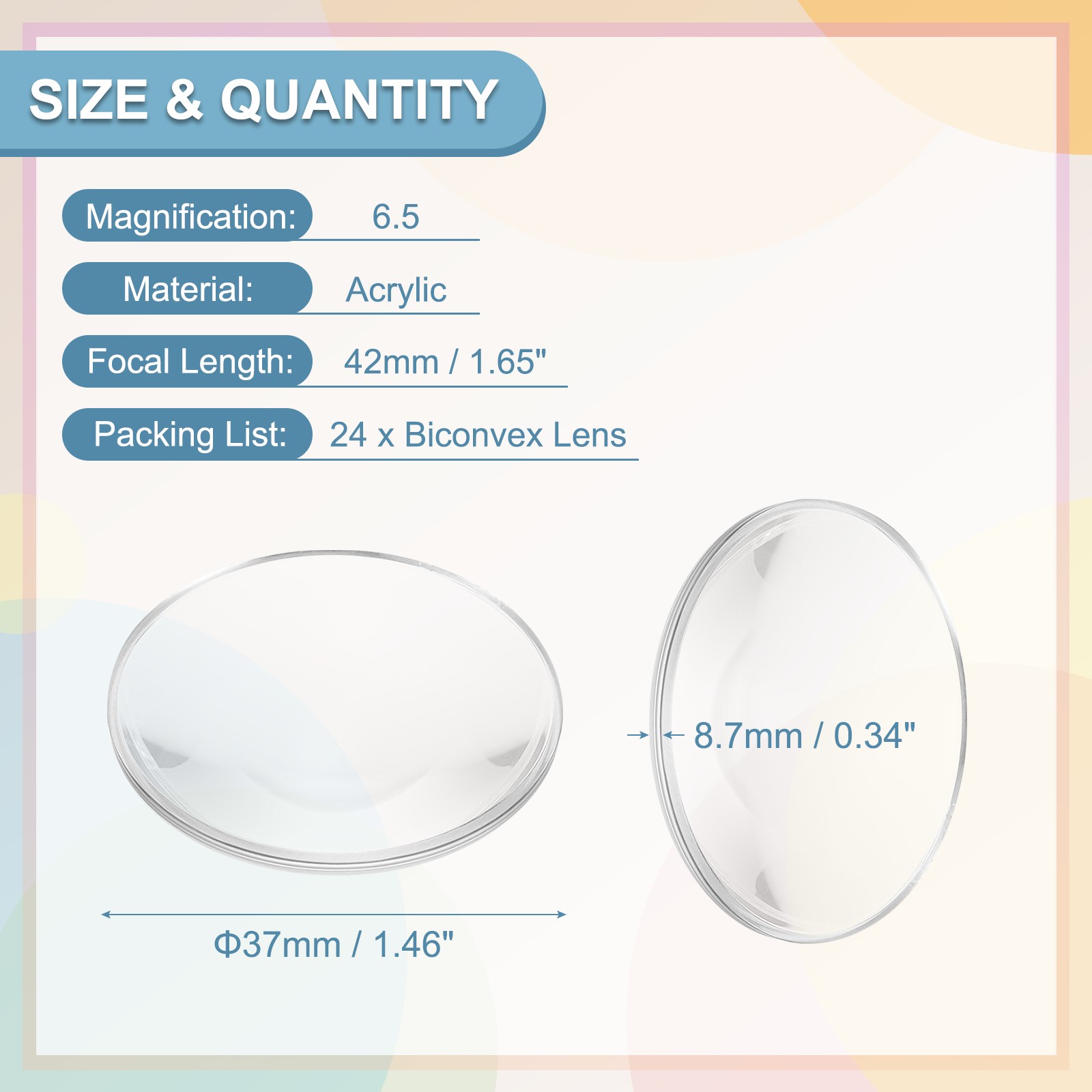 24 Pack Biconvex Lens, 37mm Dia. 42mm Focal Length Aspheric Optical Lenses
