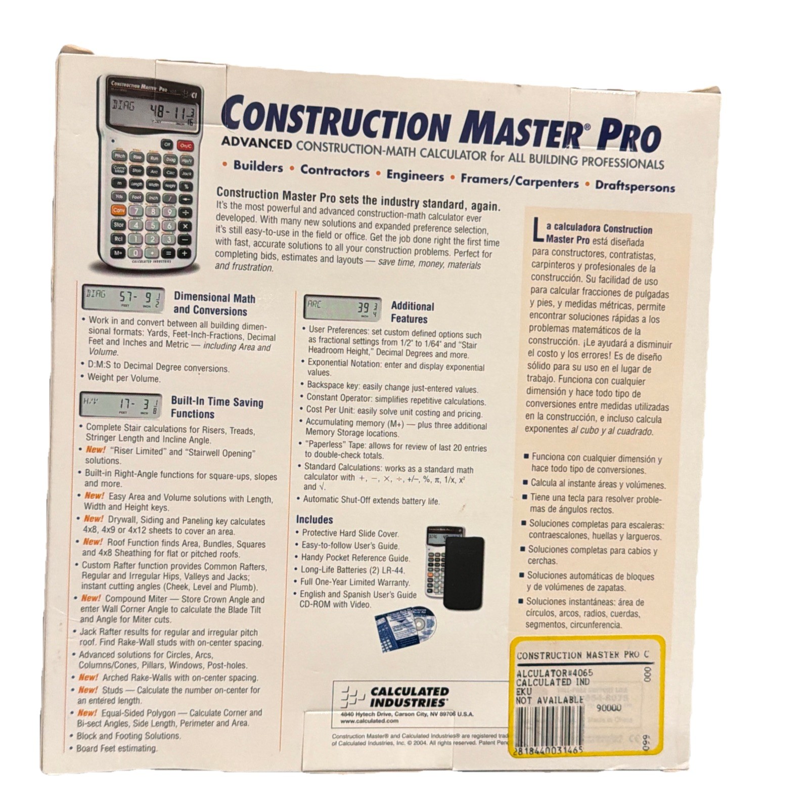 Construction Master Pro 4065 Advanced Math Calculator For All Builders 2004 New
