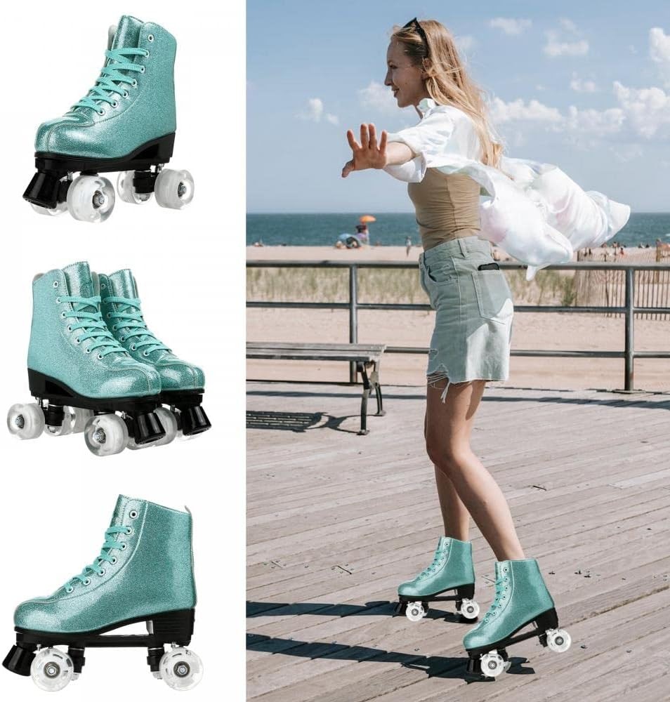Roller Skates Women Holographic High Top PU Leather Rollerskates Shiny