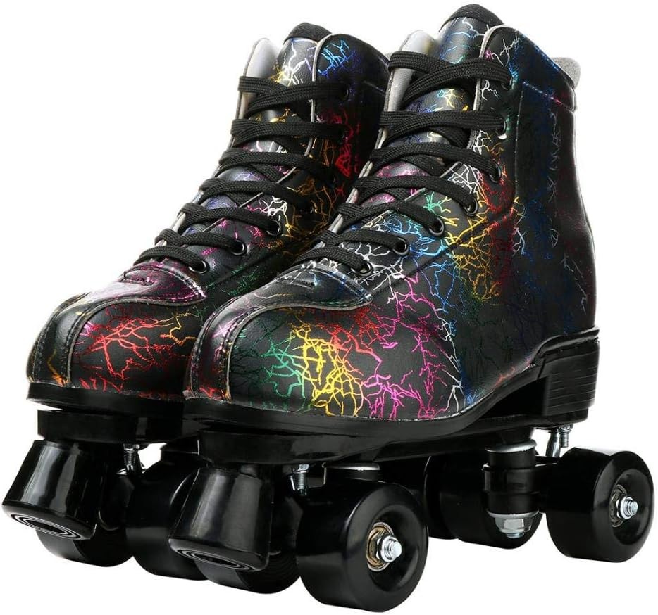 Roller Skates Women Men Cowhide High-Top Shoes Classic Double-Row Roller Skate