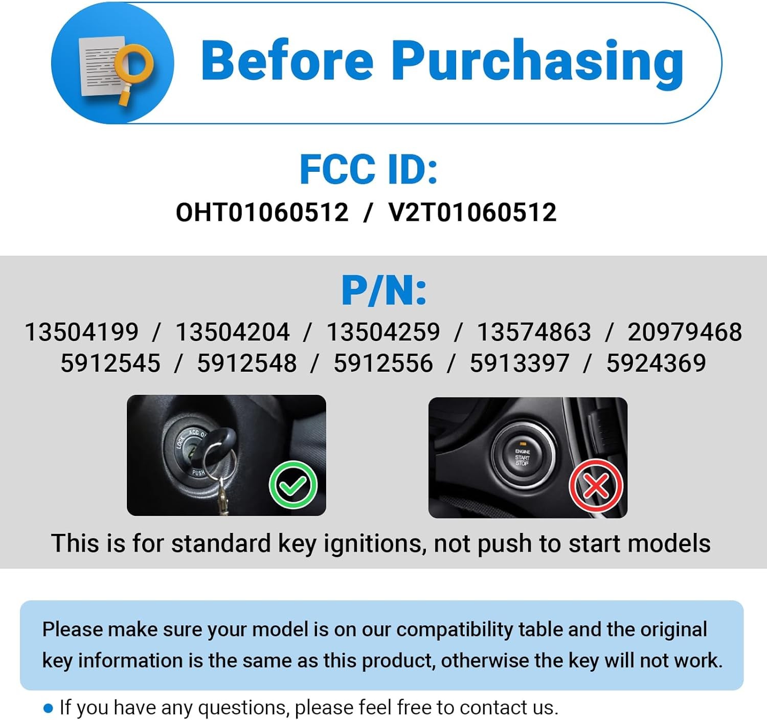 Car Key Fob Keyless Entry Remote Compatible with 2010-2019 Cruze/Camaro/Impala/E