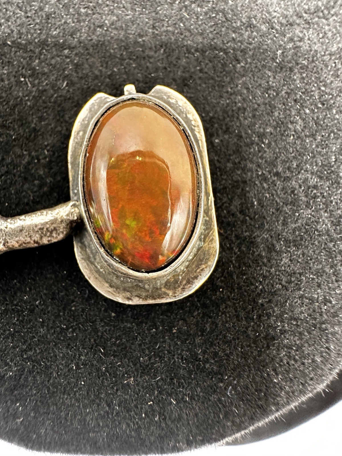 Artisan Handmade Womens Bar Ring 6 Sterling Silver Ethiopian Opal Unique