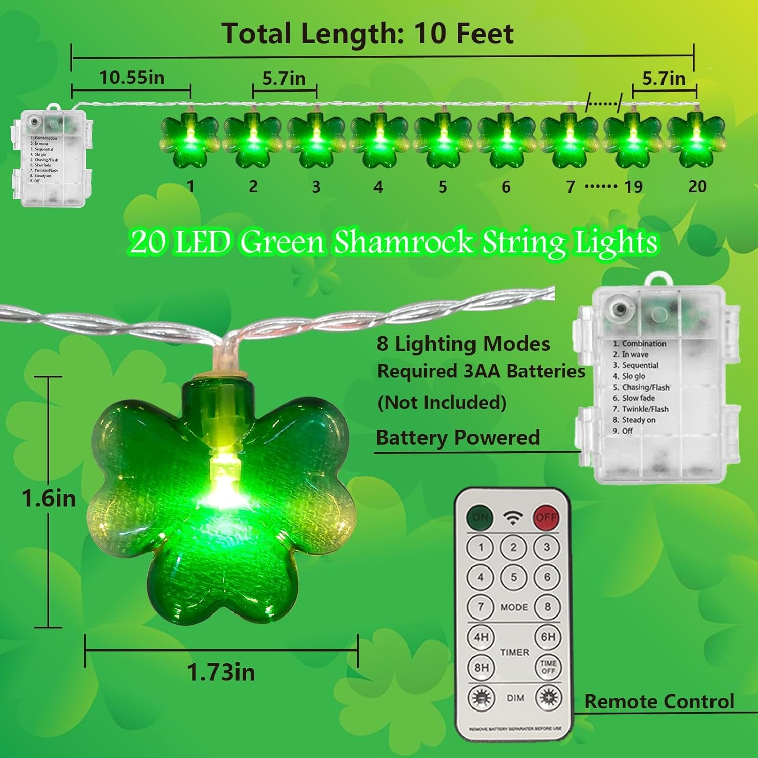 Особенности: Shamrock String Lights for St. Patrick's Day