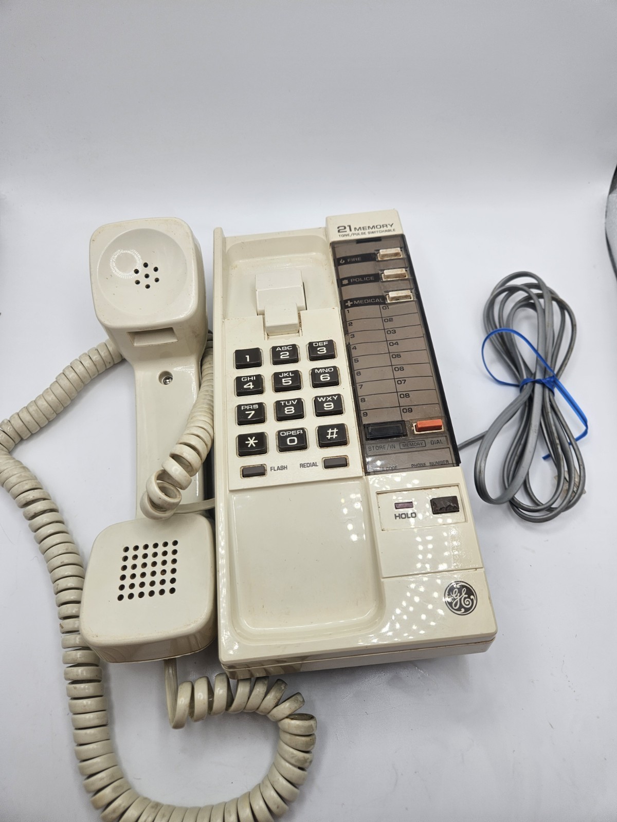 как выглядит Vtg GE Landline Wall/Desk Phone Button Beige 40" Corded,21 Memory фото