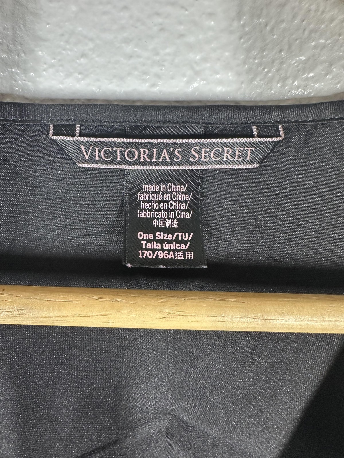 как выглядит Victorias Secret Robe Womens One Size Black Satin Love Kimono Lounge Sleep фото