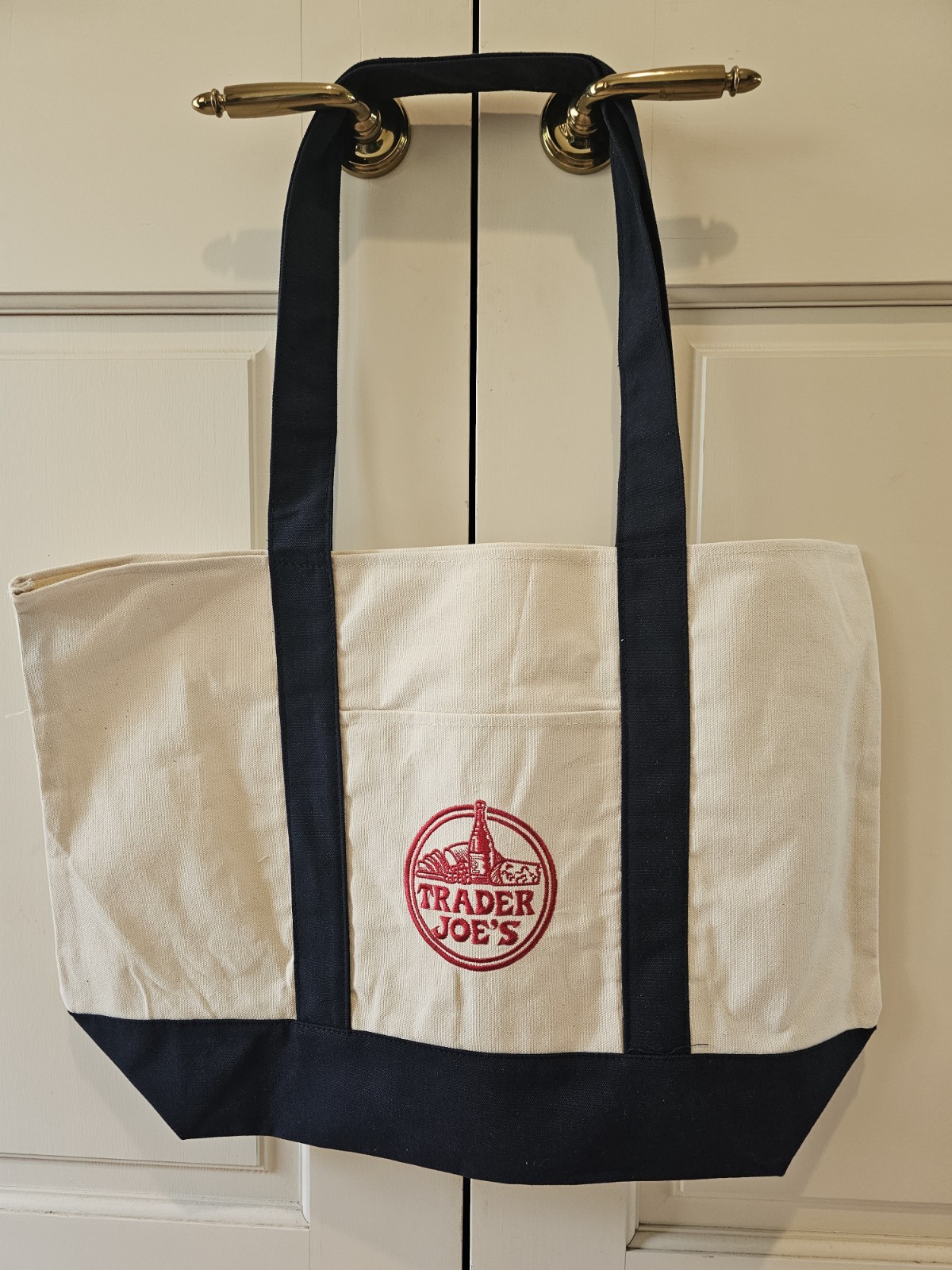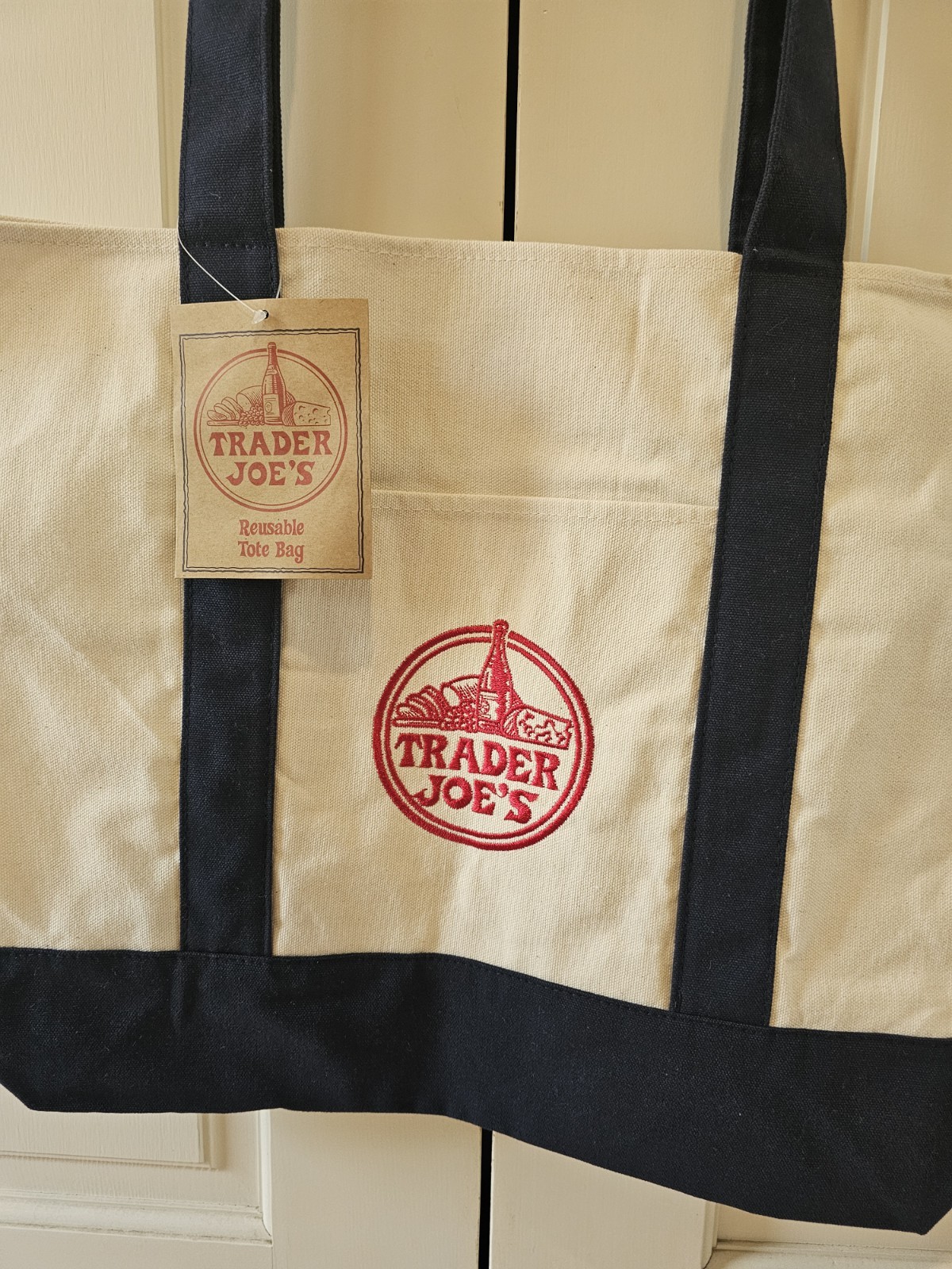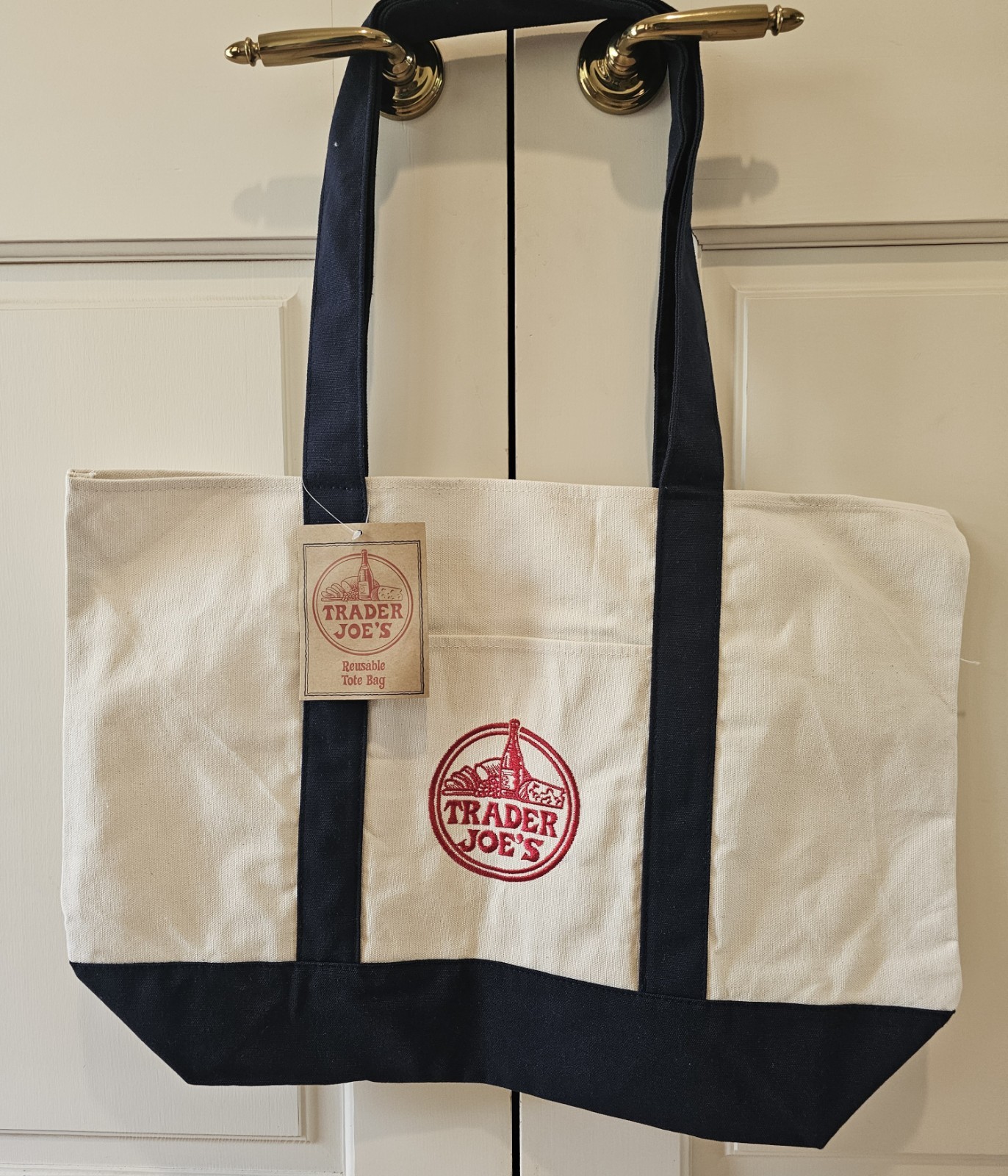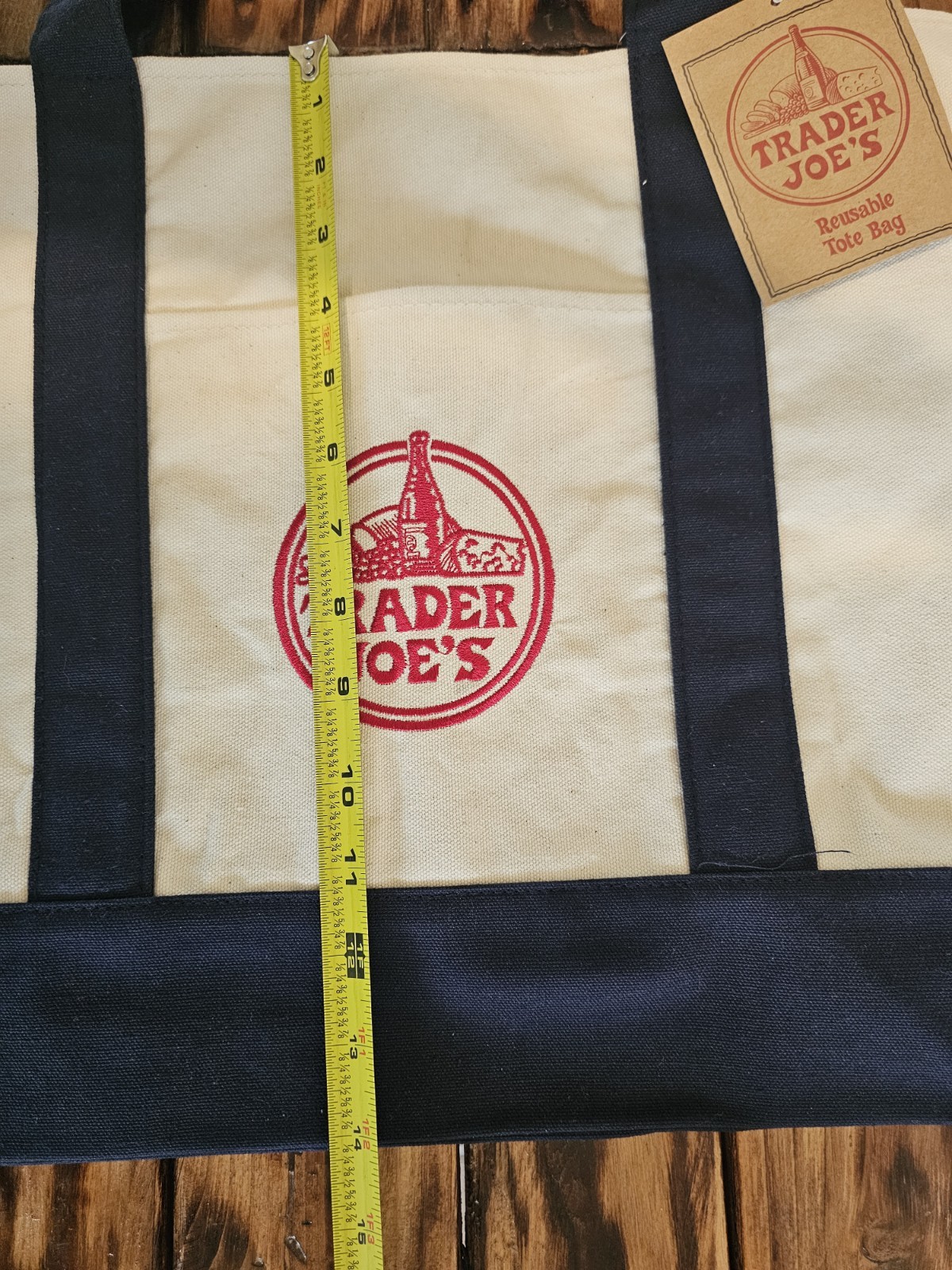 TRADER JOE'S LARGE CANVAS BAG HEAVY COTTON REUSABLE TOTE BAG LARGE NAVY - New