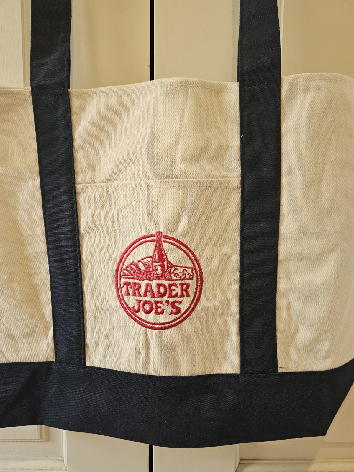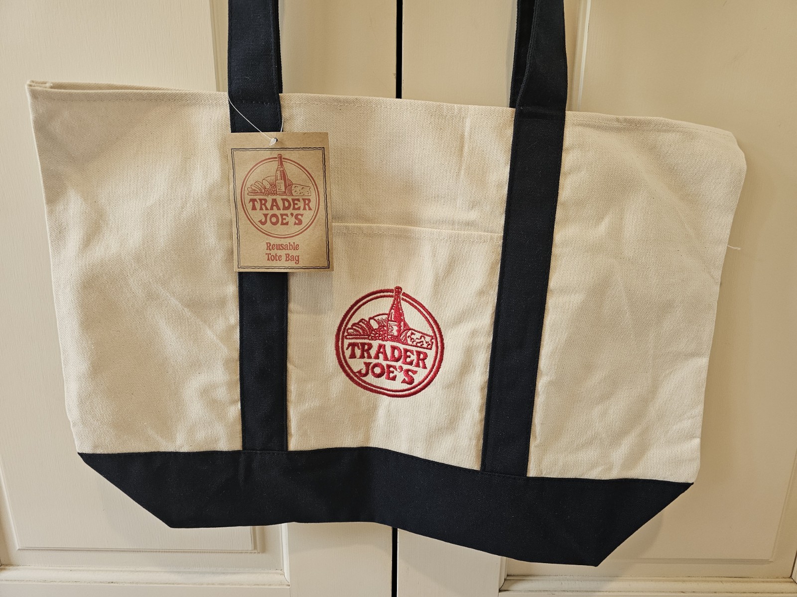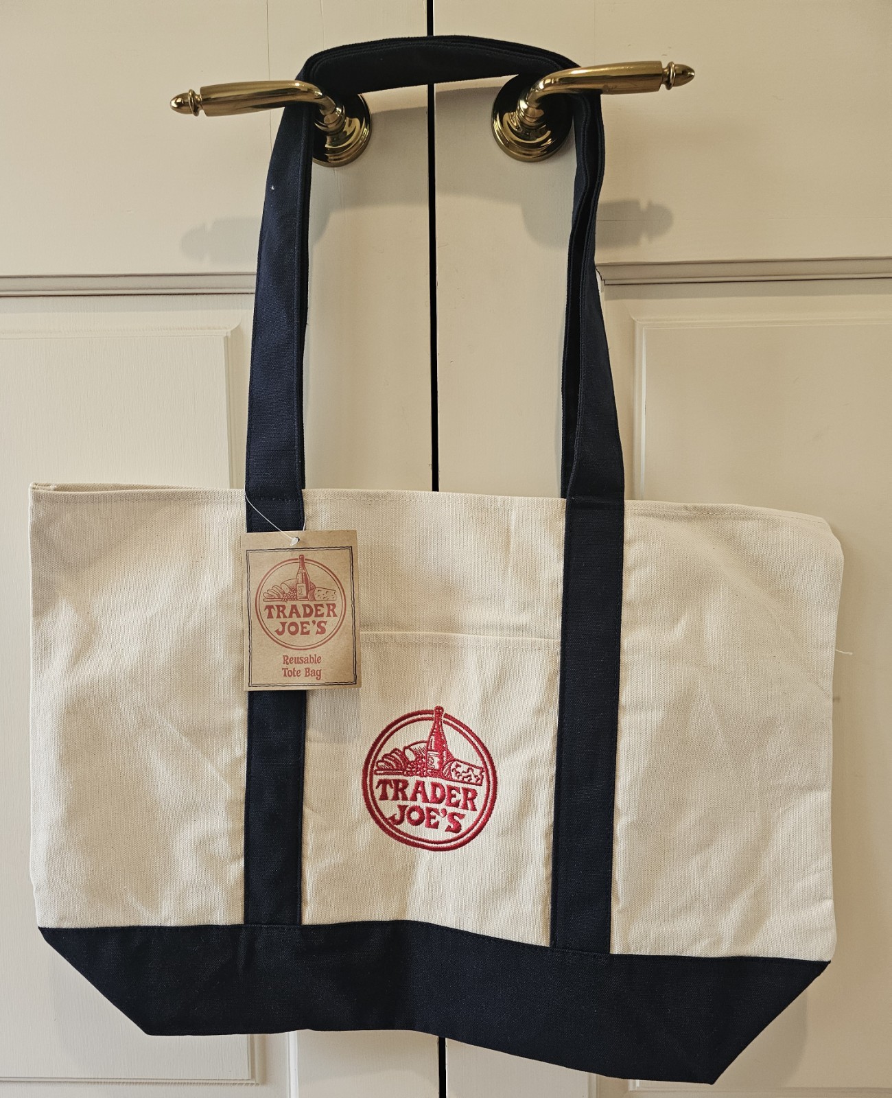 TRADER JOE'S LARGE CANVAS BAG HEAVY COTTON REUSABLE TOTE BAG LARGE NAVY - New