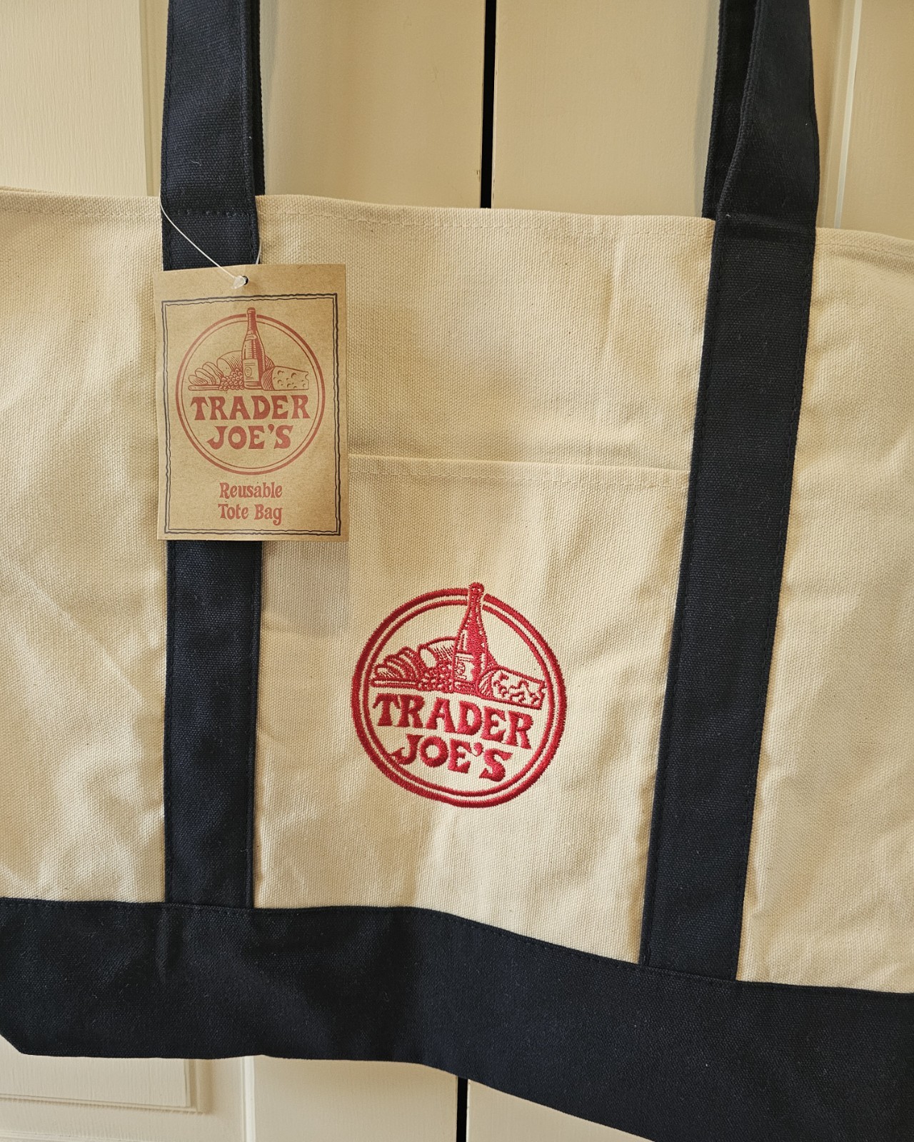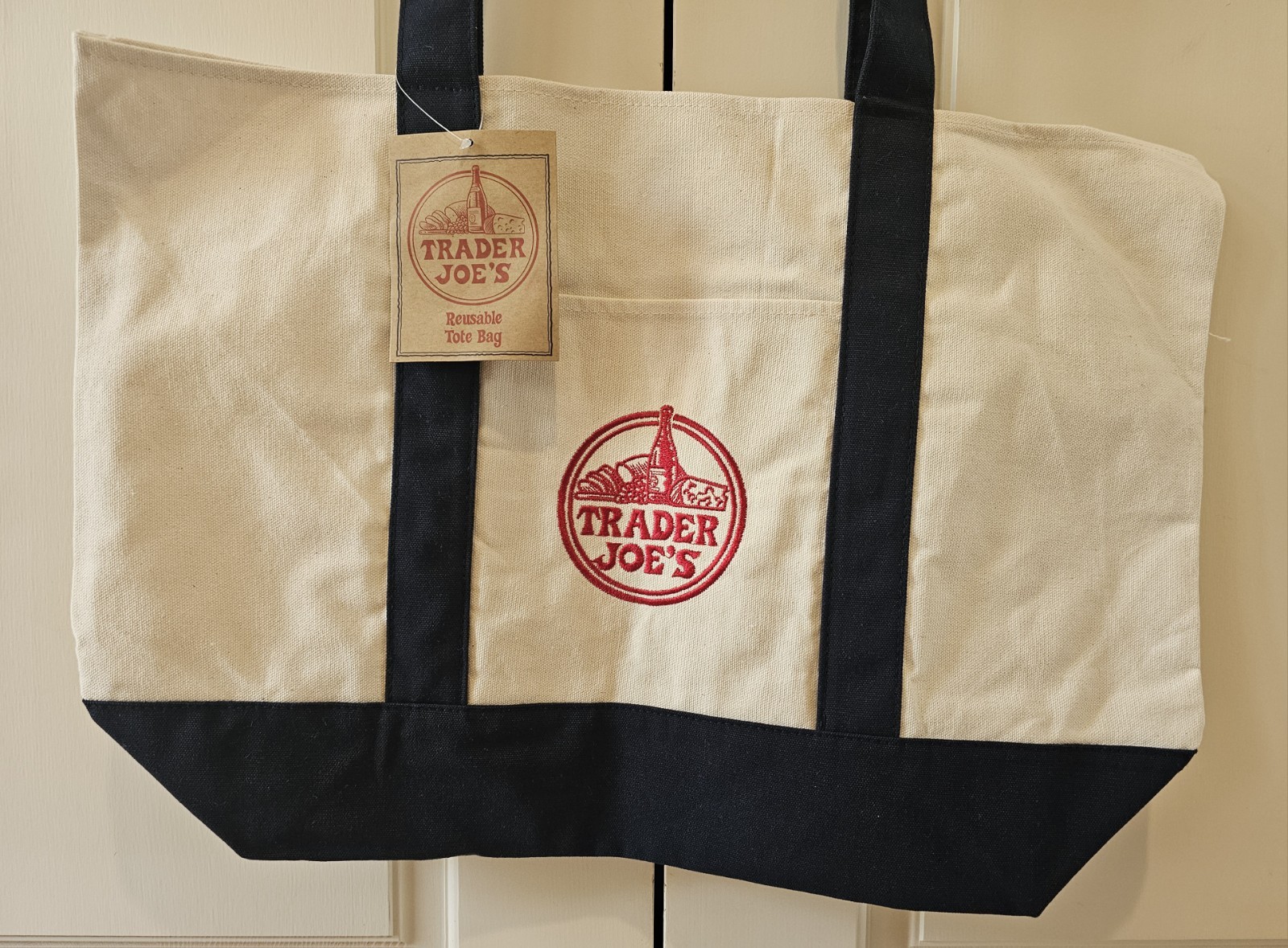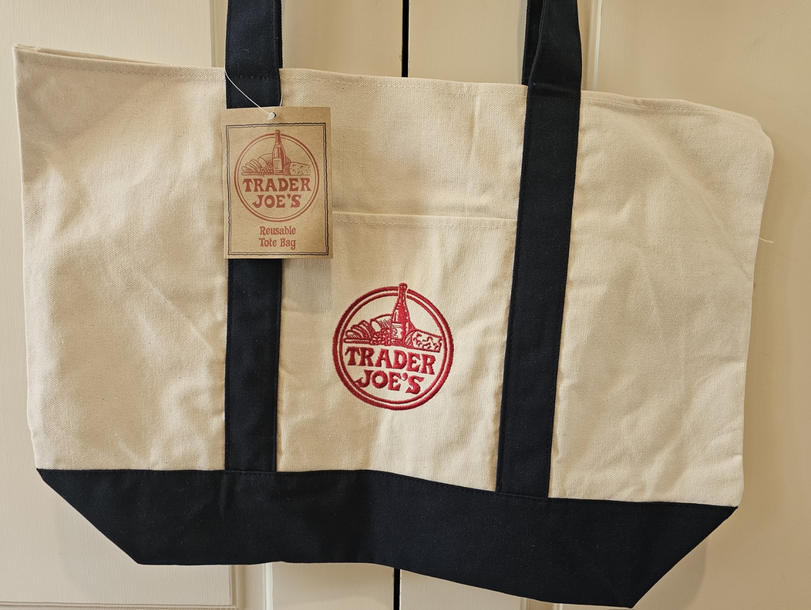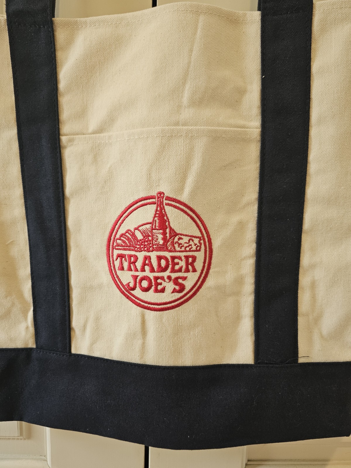 TRADER JOE'S LARGE CANVAS BAG HEAVY COTTON REUSABLE TOTE BAG LARGE NAVY - New