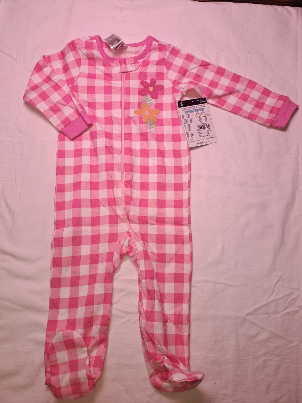 как выглядит 2-Piece Gerber Girls 6-9M Sleep n Play Footed Pajamas Pink/White Flowers фото