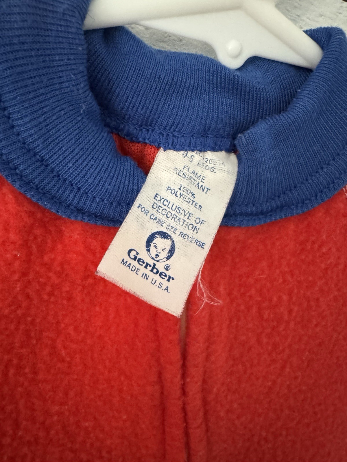 Vintage Fleece Red/Blue Footed Blanket Sleeper Pajamas Size 0-6 Months USA Made
