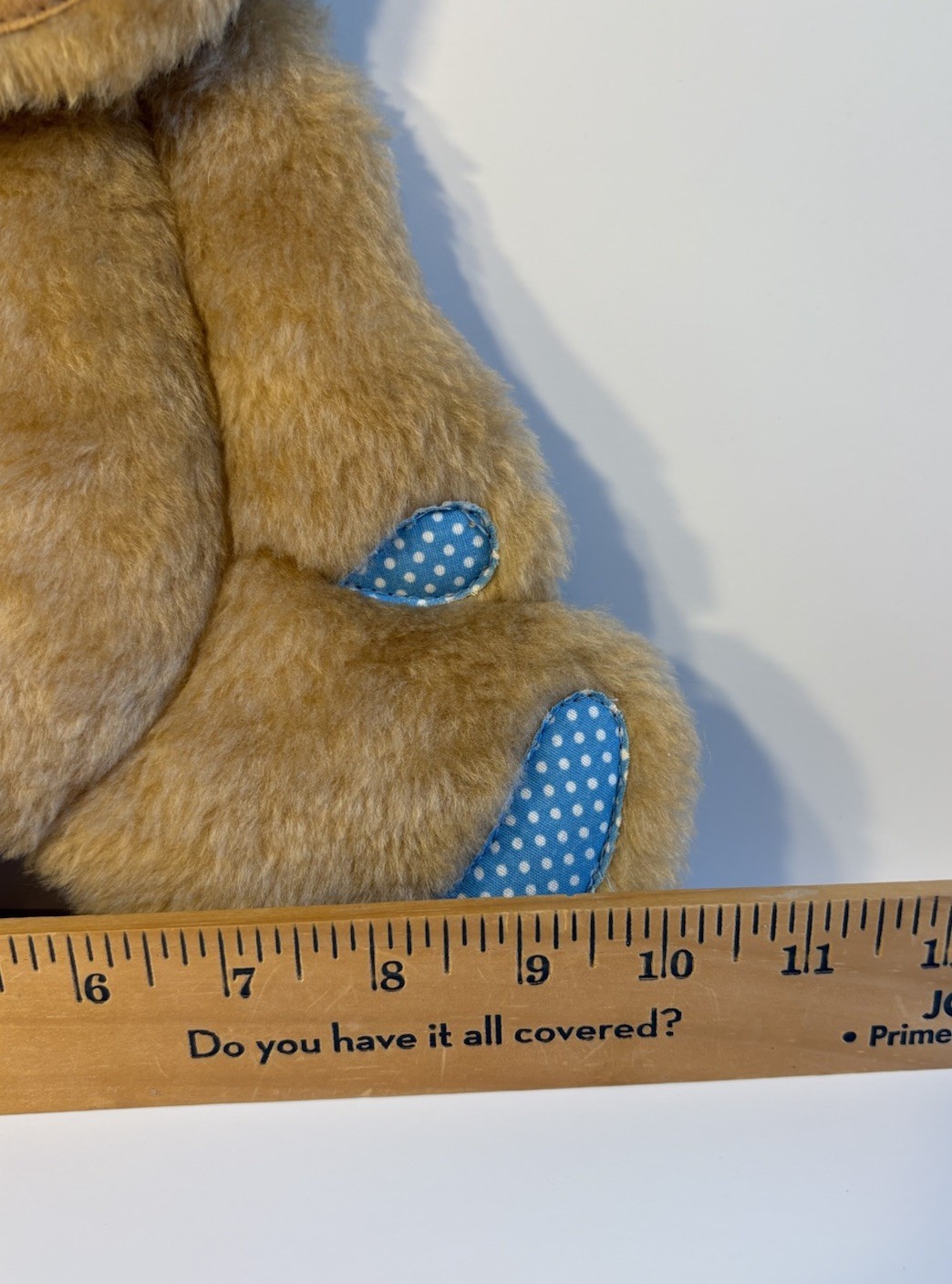 VTG Brown/Blue Teddy Bear Flat Plush Wall Hanging Nursery Decor Infantino EUC