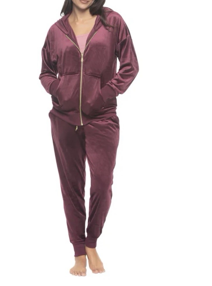Felina Women's Velour Track Suit Ultra Soft Relaxed Fit Hoodie Jogger PURPLE- XL