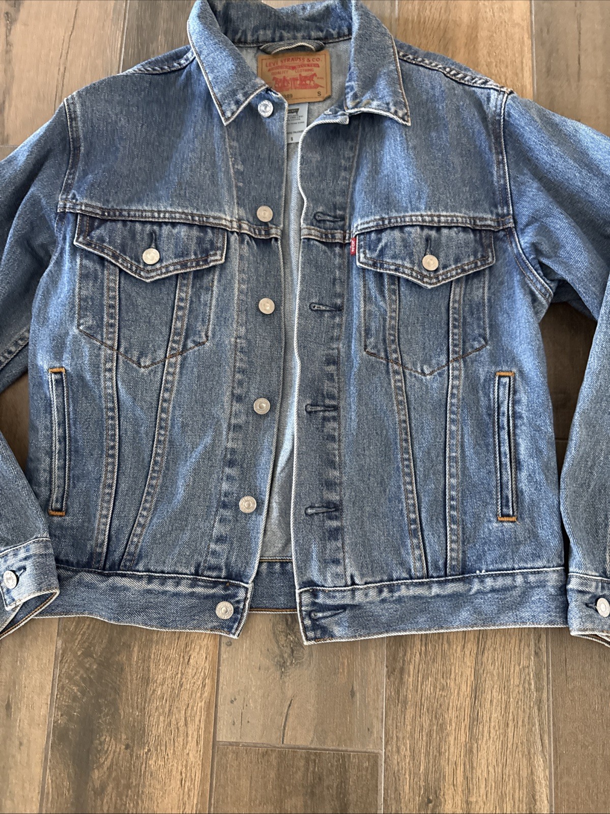 как выглядит Levi Strauss Jean Jacket Mens Size Small Blue Denim Trucker 70507-0389 VTG фото