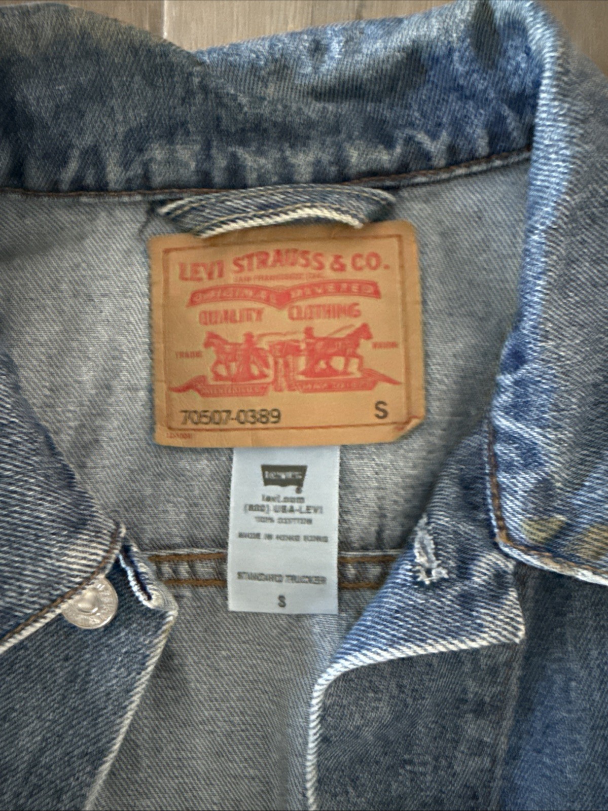 Levi Strauss Jean Jacket Mens Size Small Blue Denim Trucker 70507-0389 VTG
