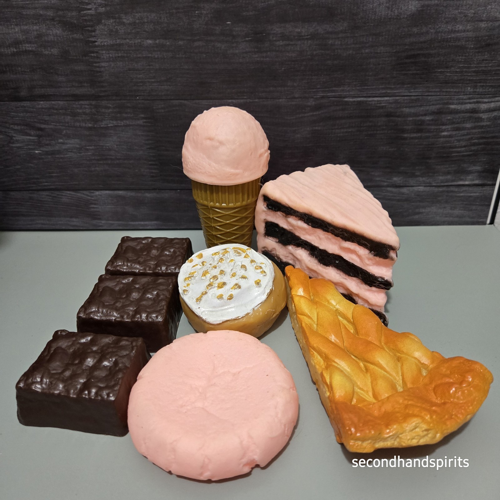 Mixed Play Food Dessert Lot - 8 Pieces - Squishy Cake, Pie, Brownies Ice Cream