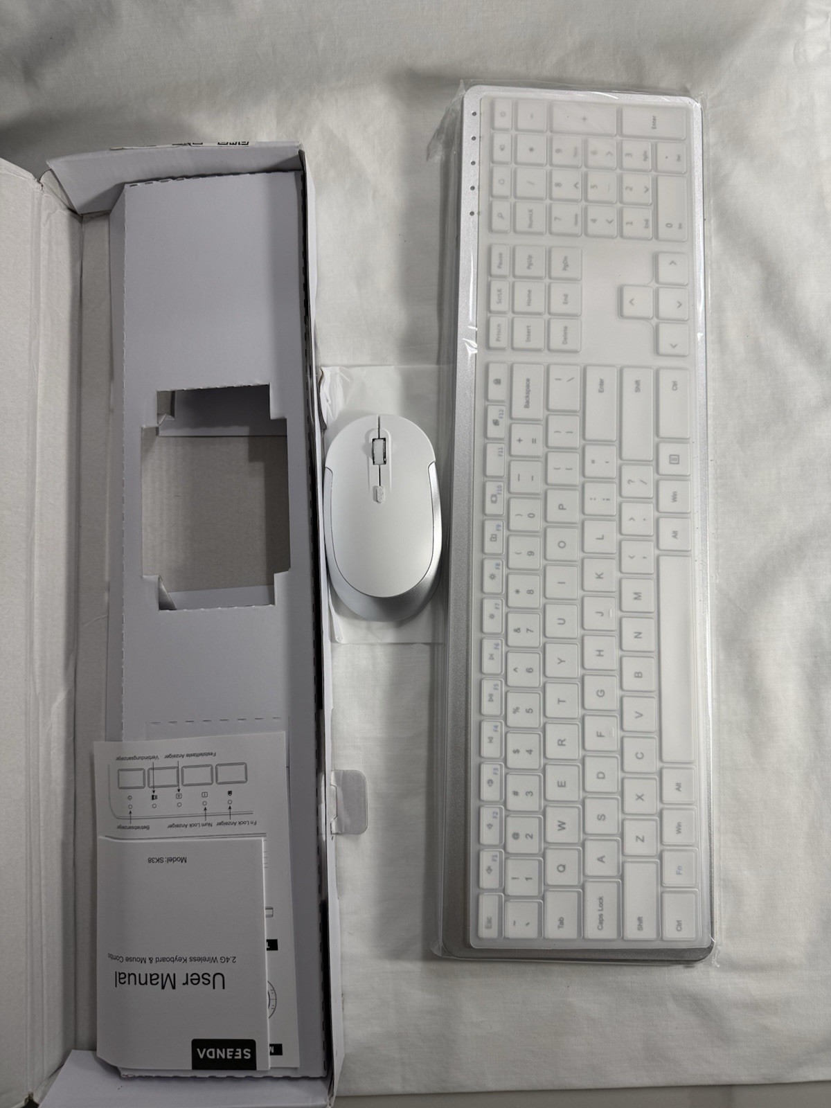 SEENDA 2.4G Wireless Keyboard and Mouse, Model SK38, White