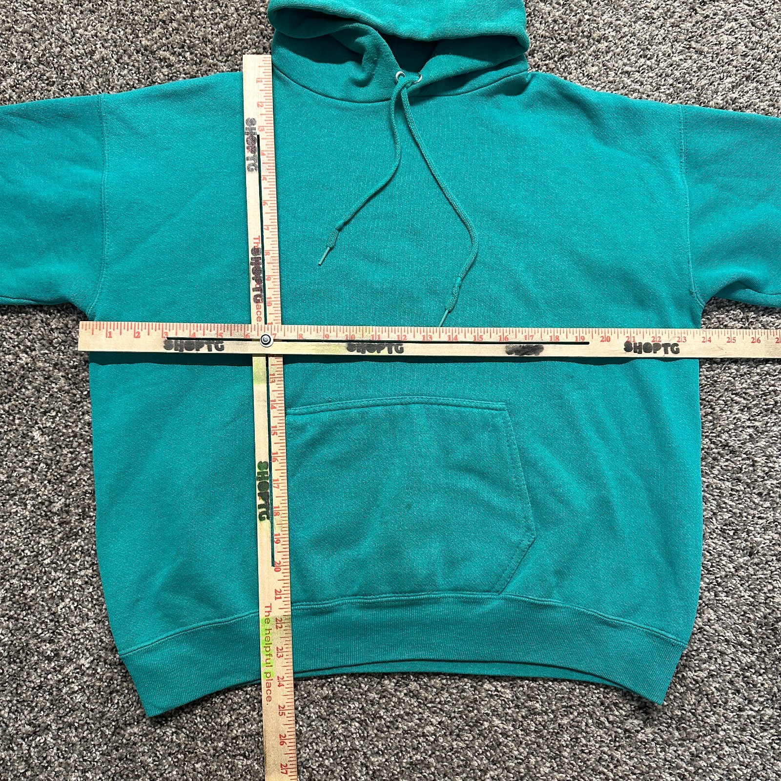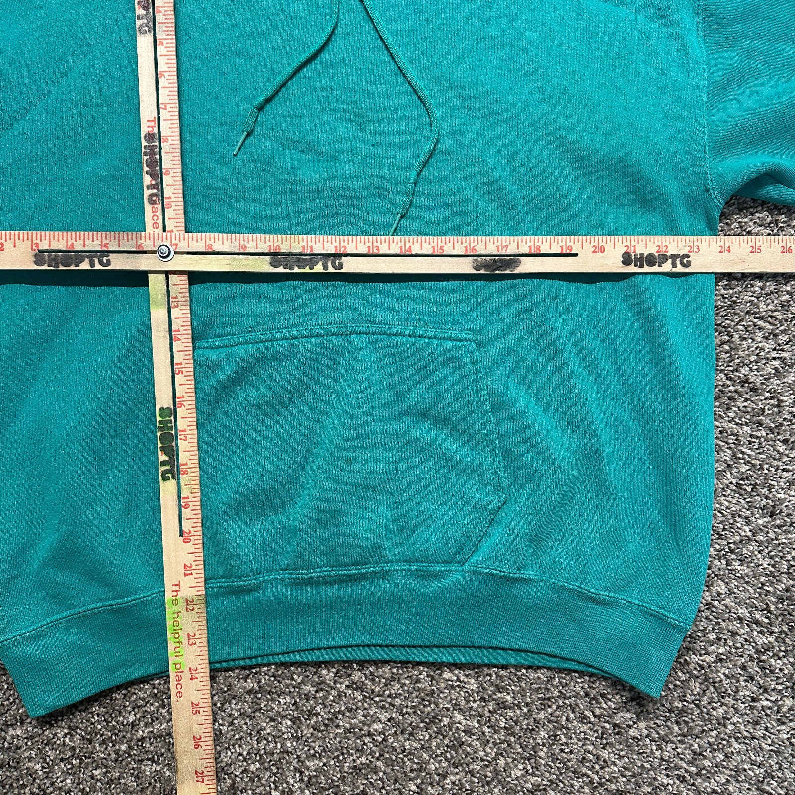 как выглядит Vintage Hoodie Sweatshirt Size L Boxy Teal Blue Blank 90s Heavyweight фото
