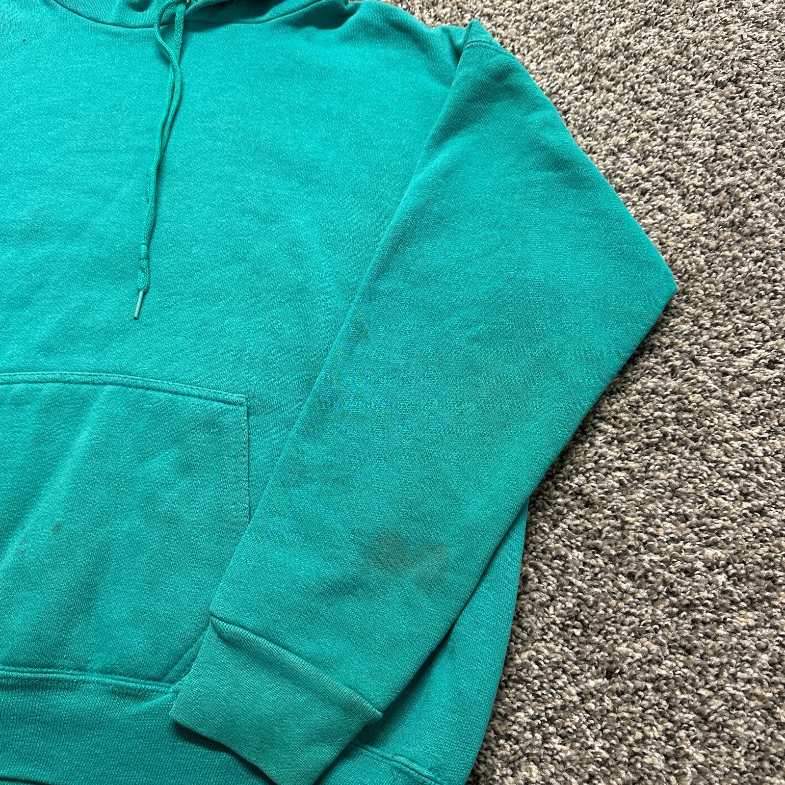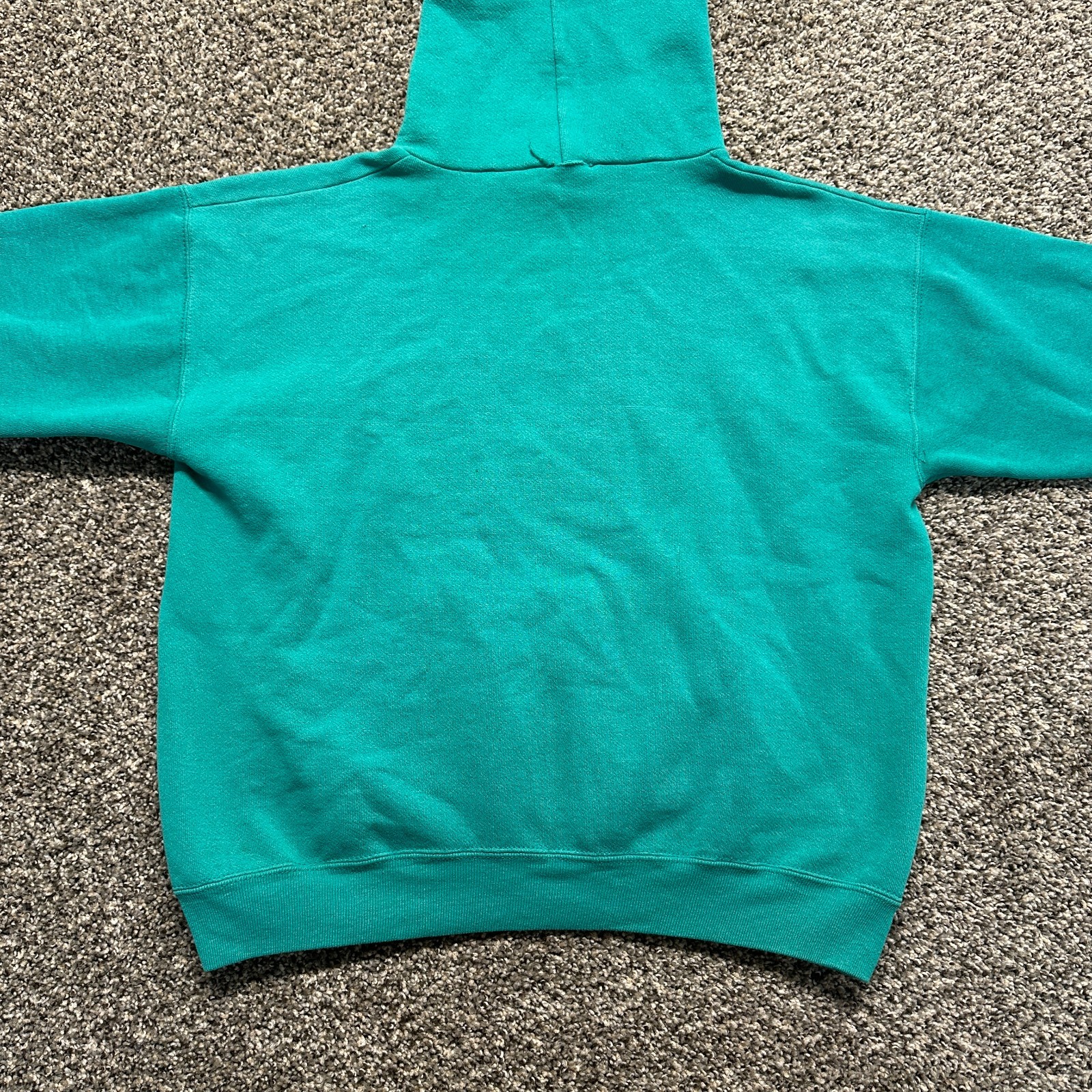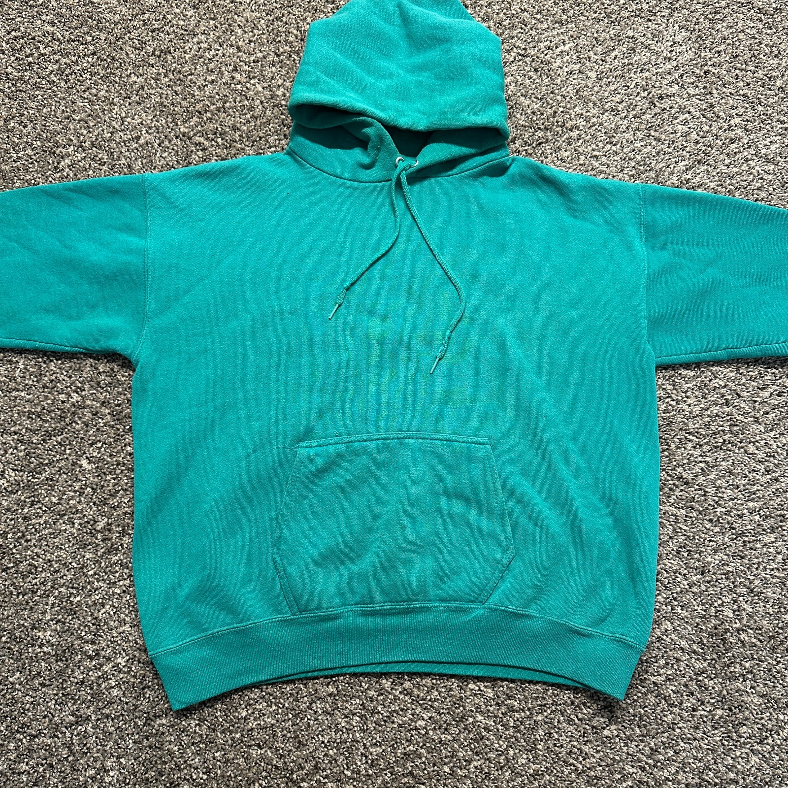 Vintage Hoodie Sweatshirt Size L Boxy Teal Blue Blank 90s Heavyweight