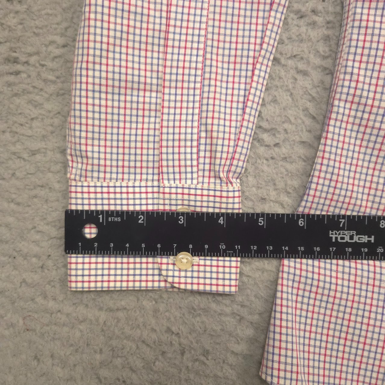 Charles Tyrwhitt Dress Shirt Mens 15.5 34 White Red Blue Check Slim Button Up