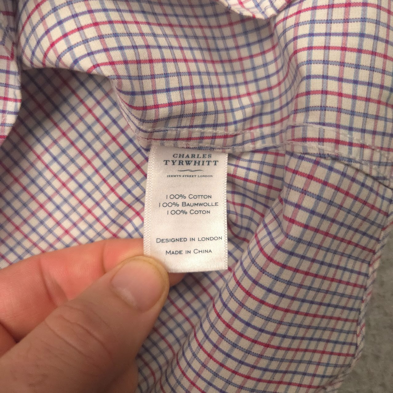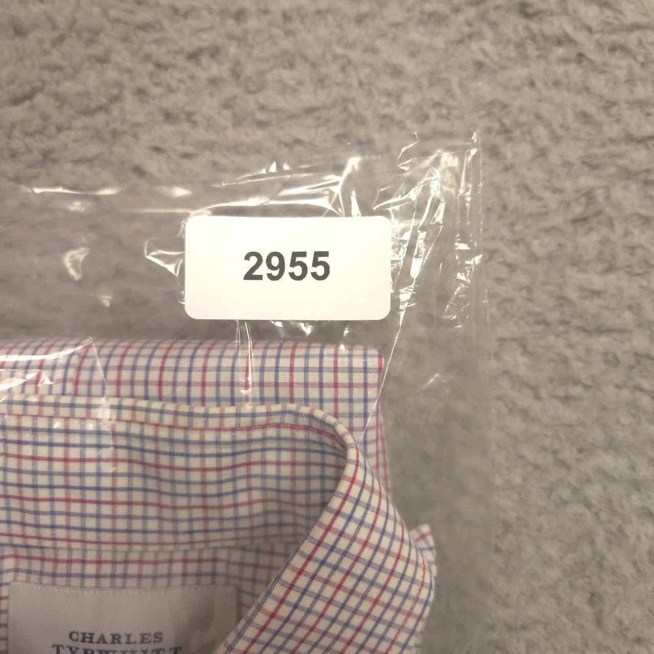 как выглядит Charles Tyrwhitt Dress Shirt Mens 15.5 34 White Red Blue Check Slim Button Up фото