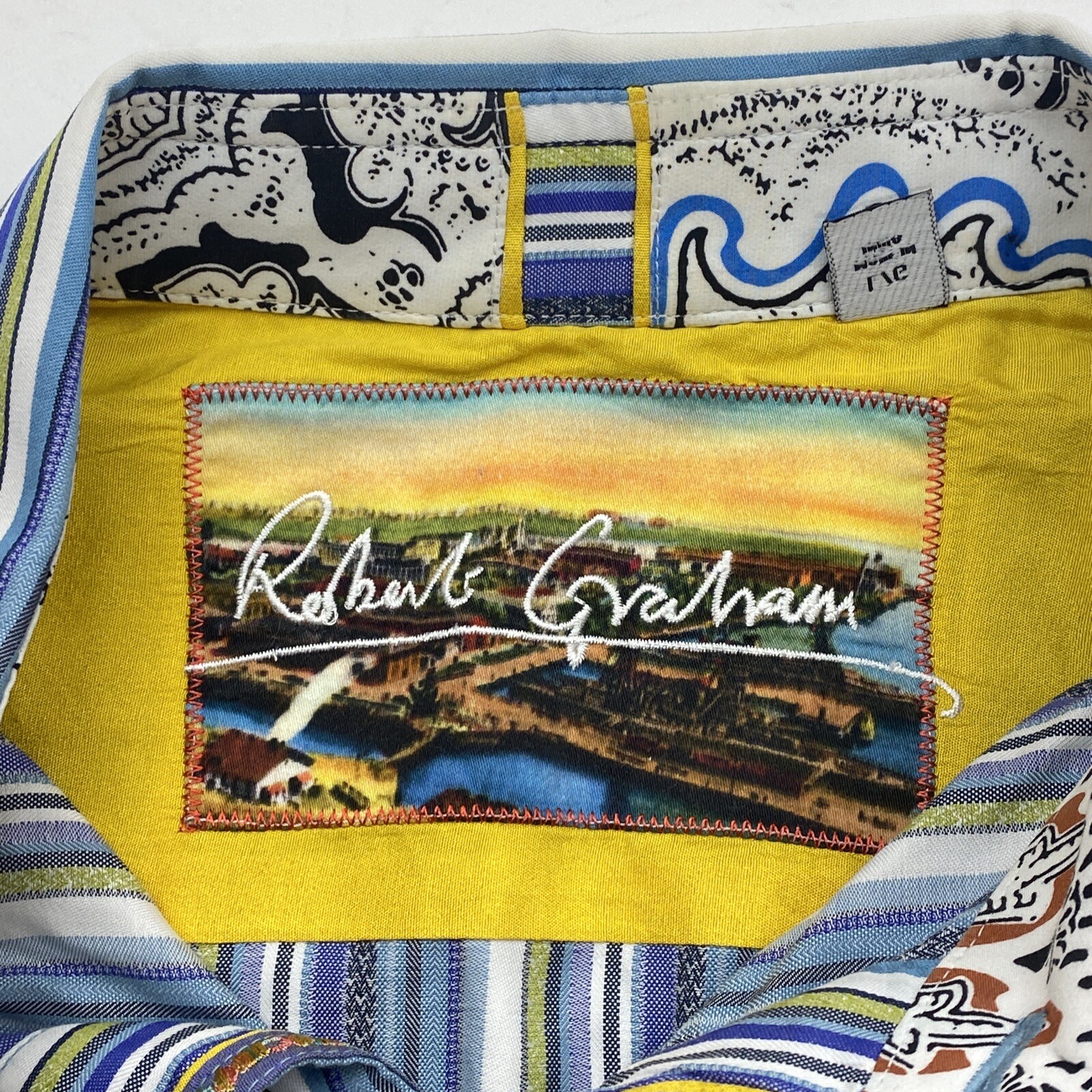 как выглядит Mens Robert Graham Blue Striped Long Sleeve Button Down Shirt Large фото