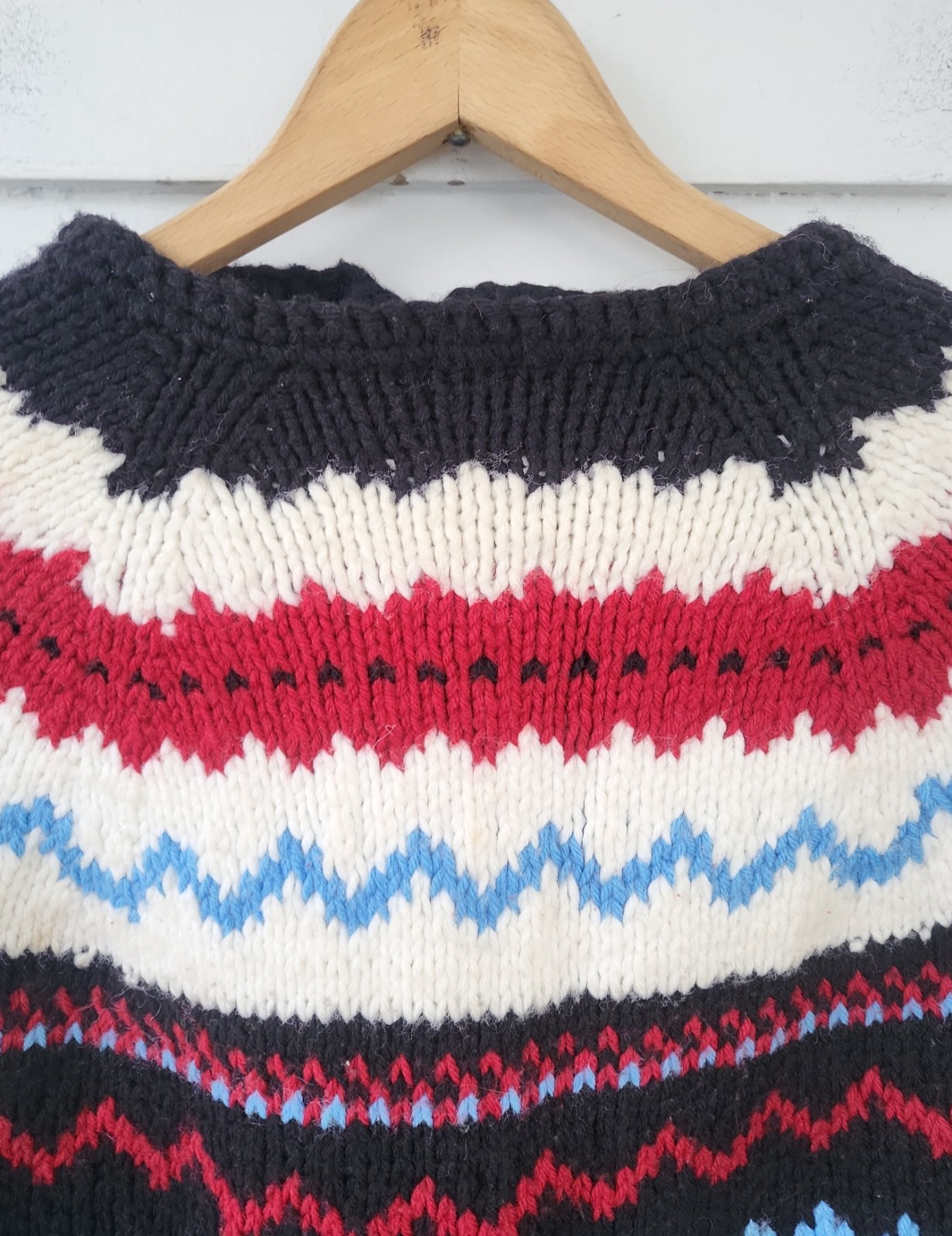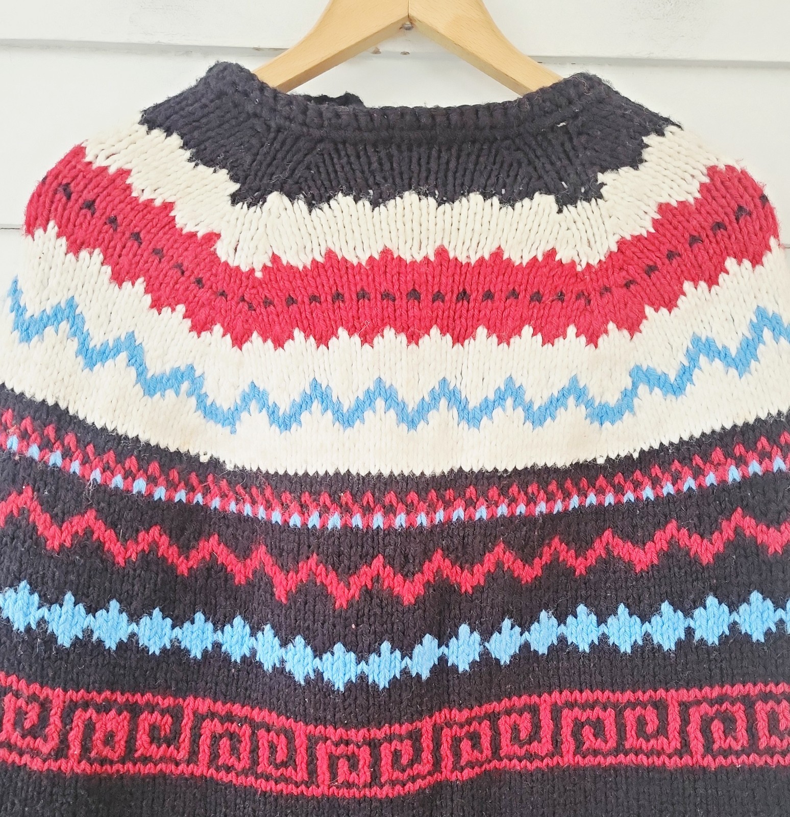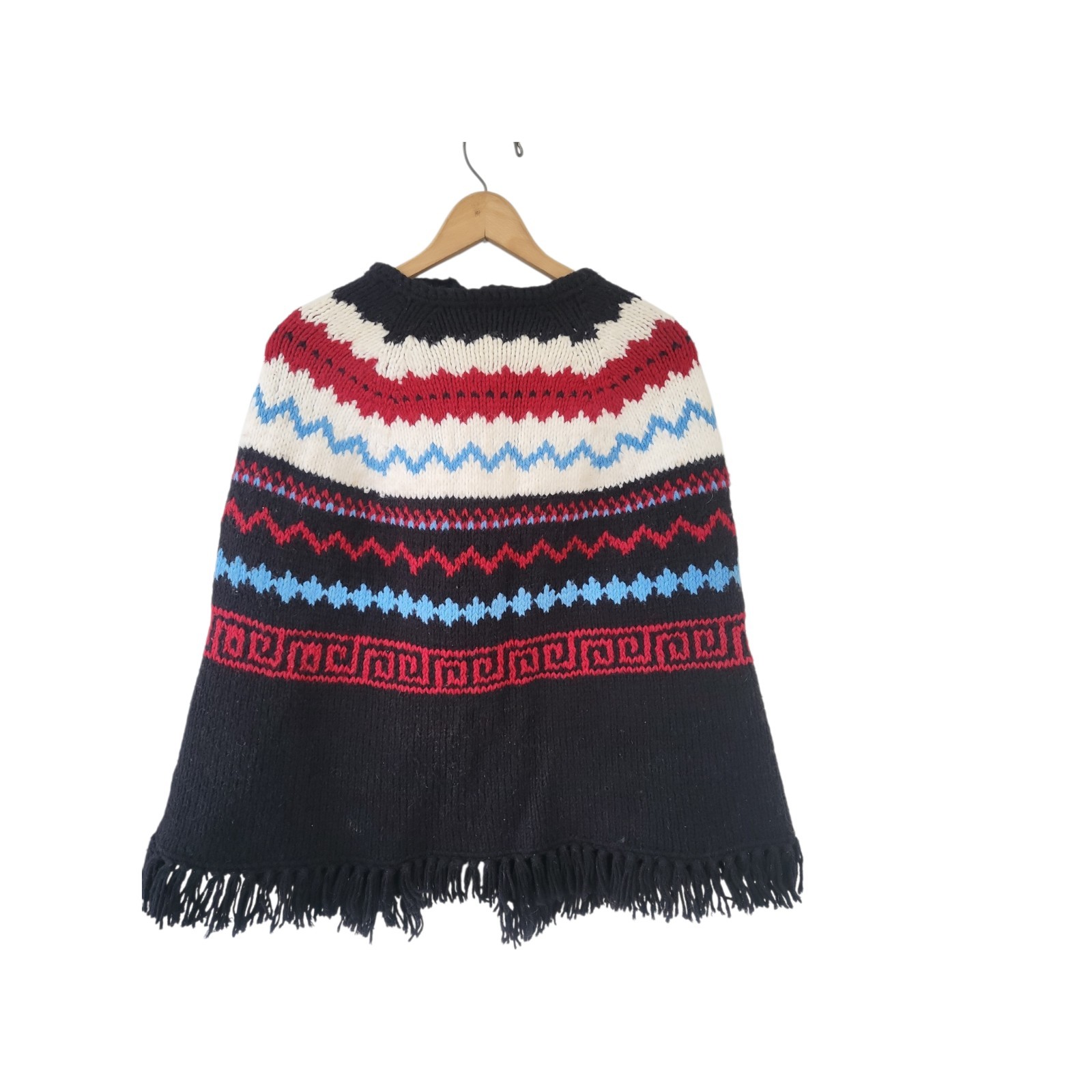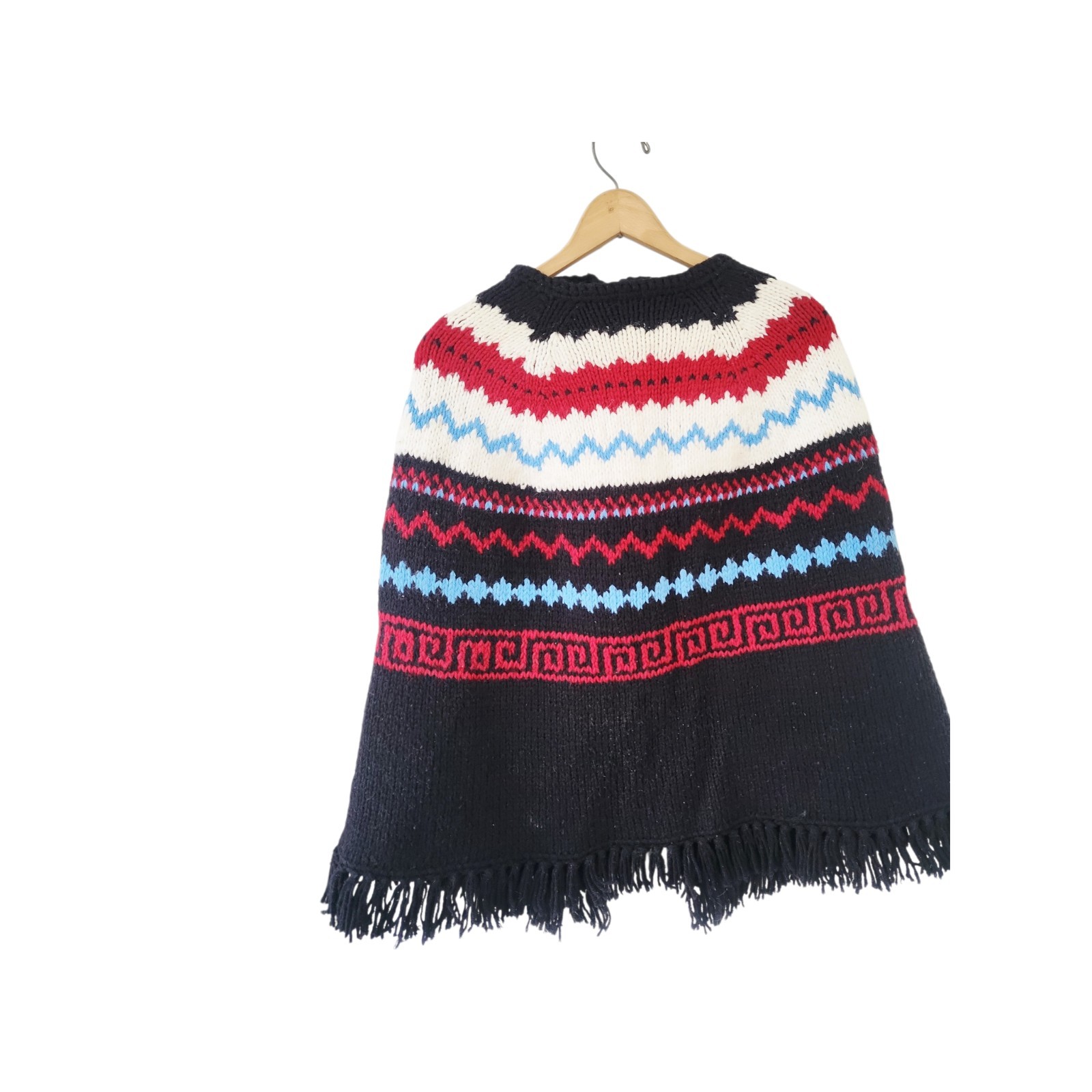 Vintage 70's Handmade Retro Crocheted Button Front Fringe Poncho Cape O/S