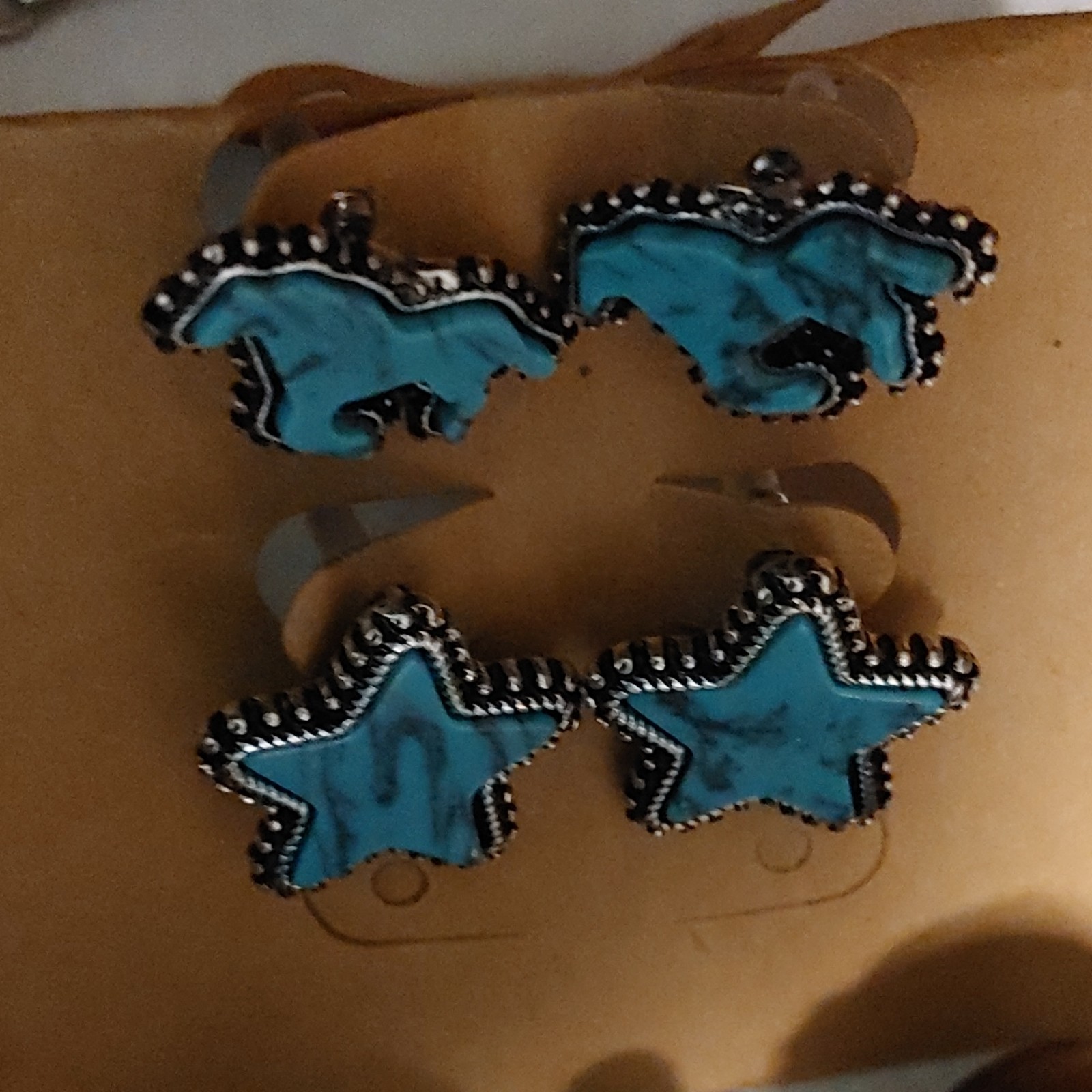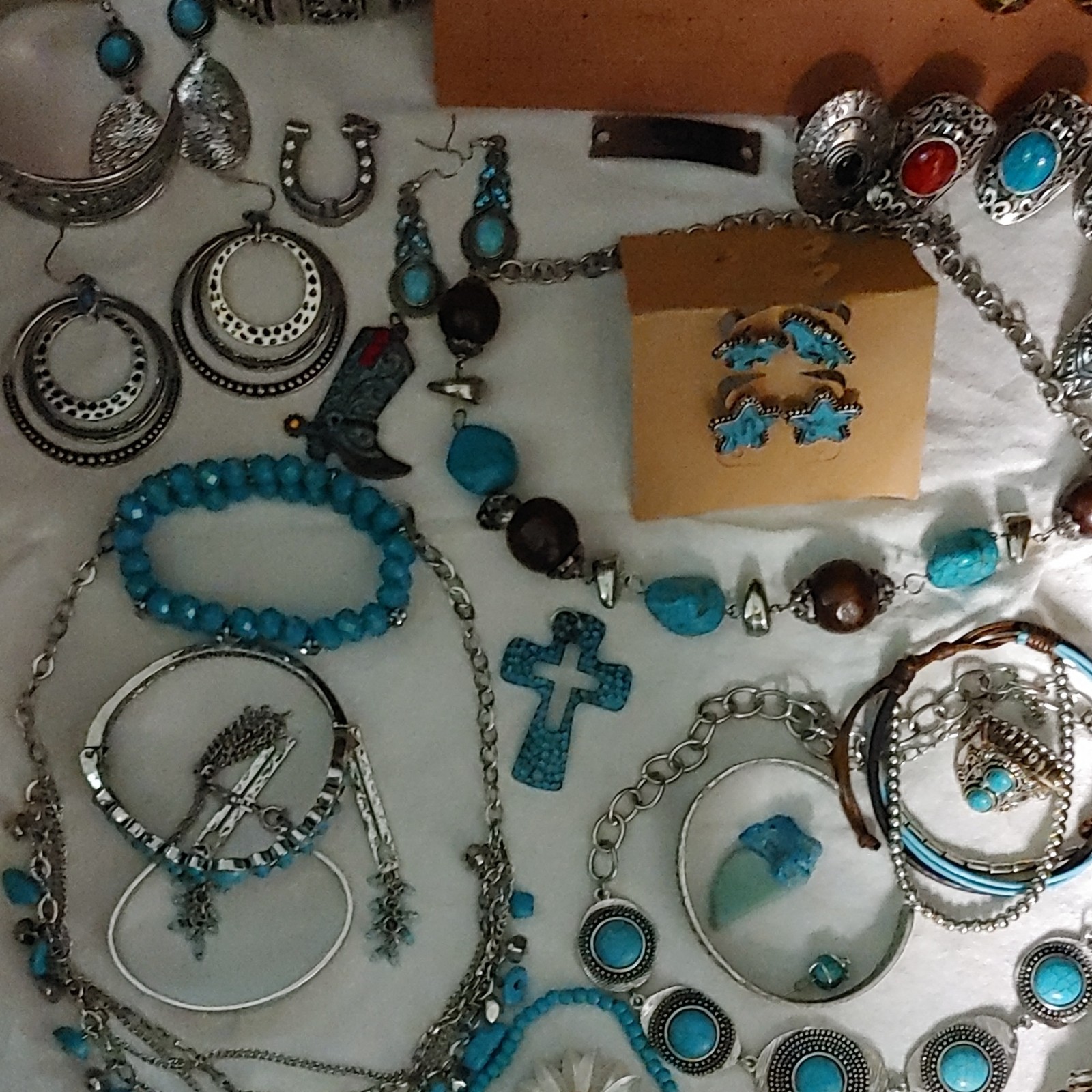 Western Turquoise Silver-Tone Jewelry Set Bracelet Earrings Ring Necklace