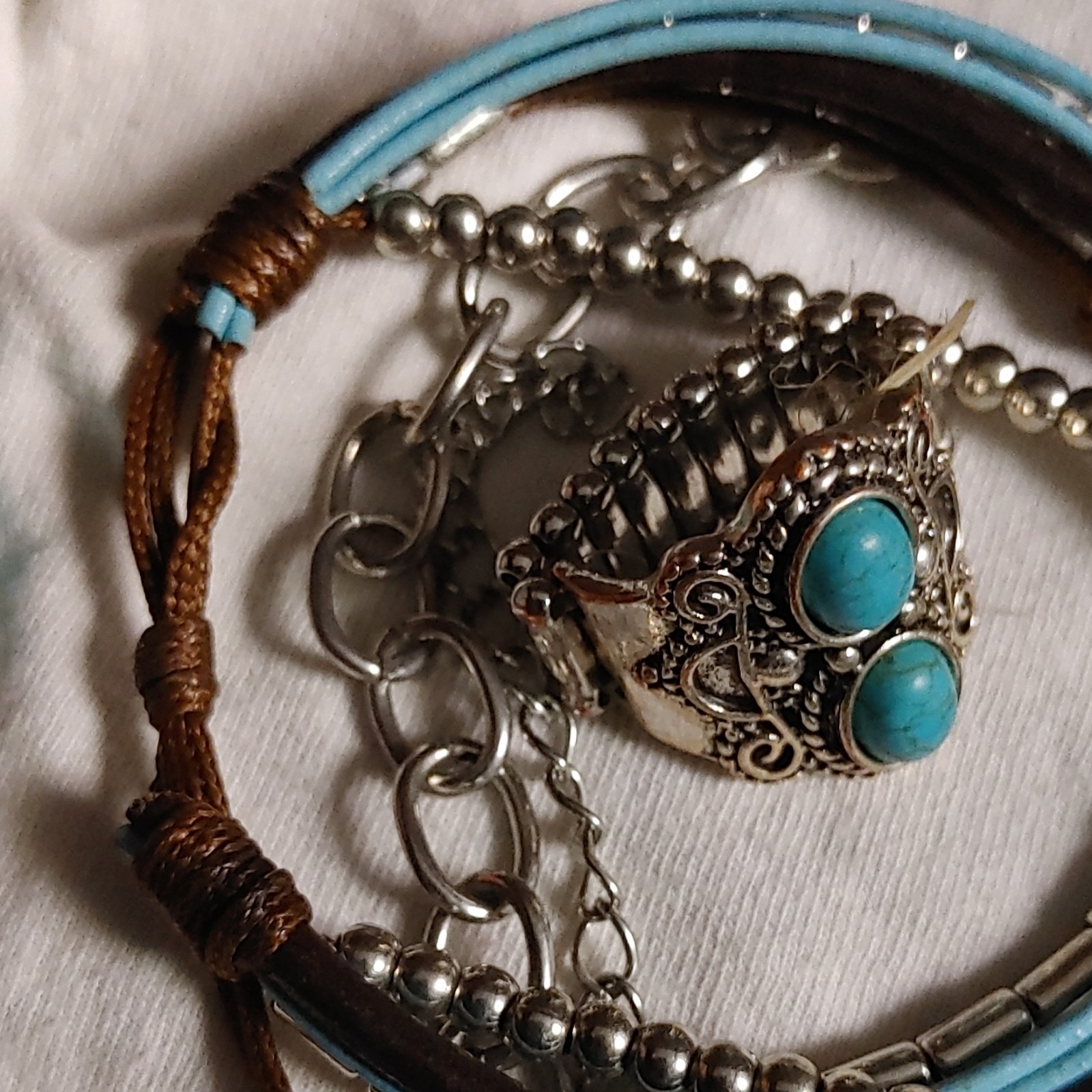 как выглядит Western Turquoise Silver-Tone Jewelry Set Bracelet Earrings Ring Necklace фото