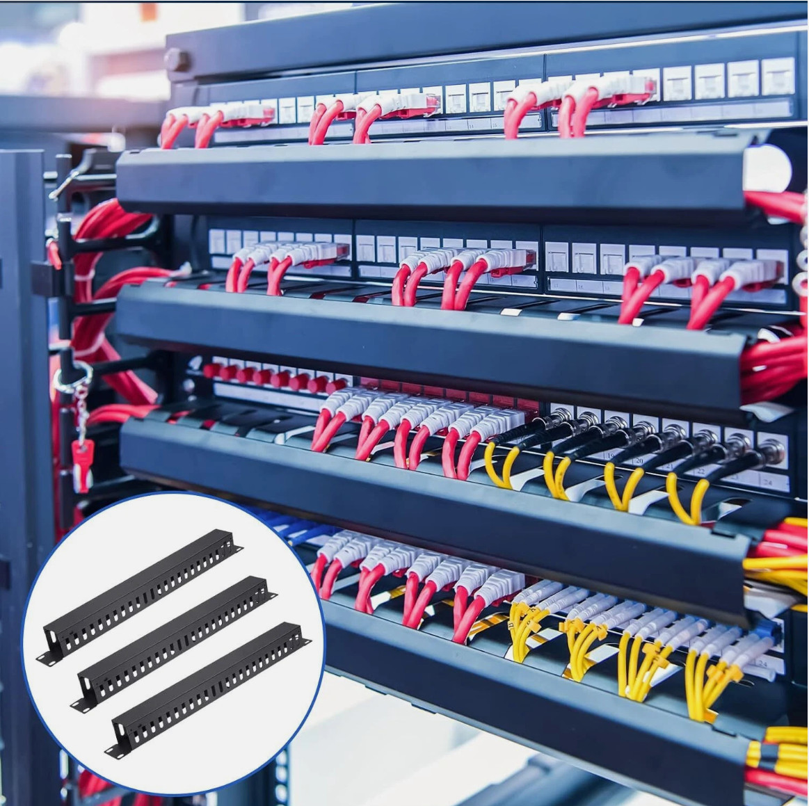 как выглядит 4 Pack 1U 19 Inch Cable Manager 24 Slot Horizontal Rack Mount Wire Management фото