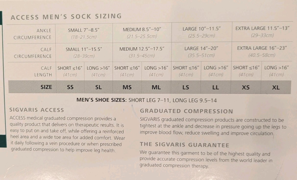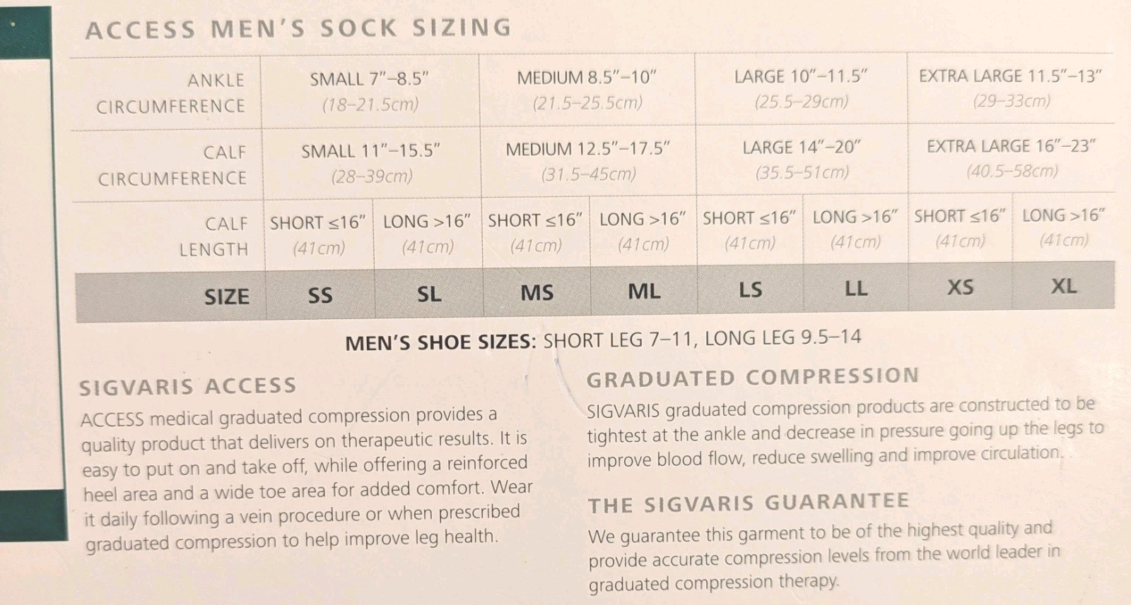 Sigvaris Graduated Compression Socks Mens 922CLSM99 Sz:LS Blck 20-30mmHg Knee Hi