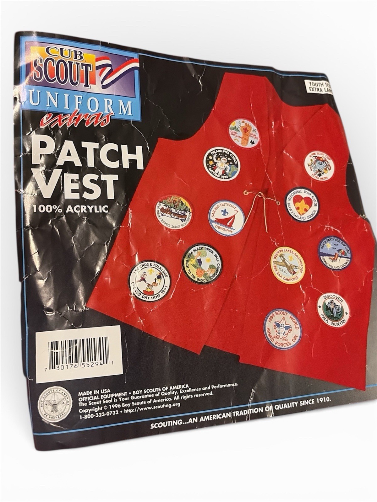 BSA CUB SCOUT UNIFORM PATCH RED Acrylic VEST Youth X-LARGE New USA Nos 1996 VNTG