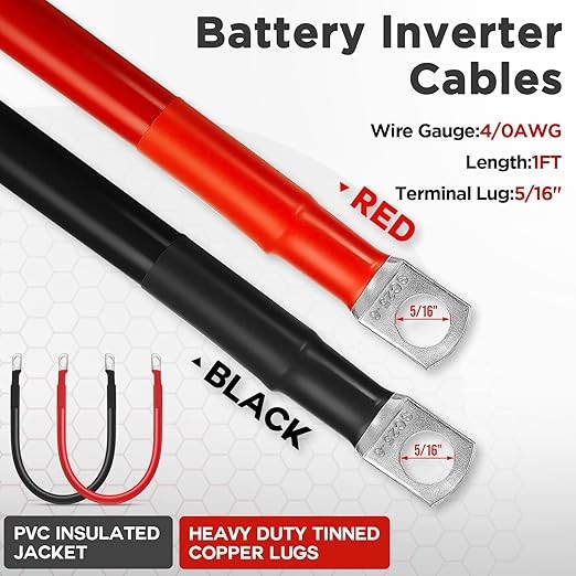 4 Gauge Battery Cable, 1FT Red 1FT Black 4 AWG Pure -1ft Red 1ft Black-4AWG
