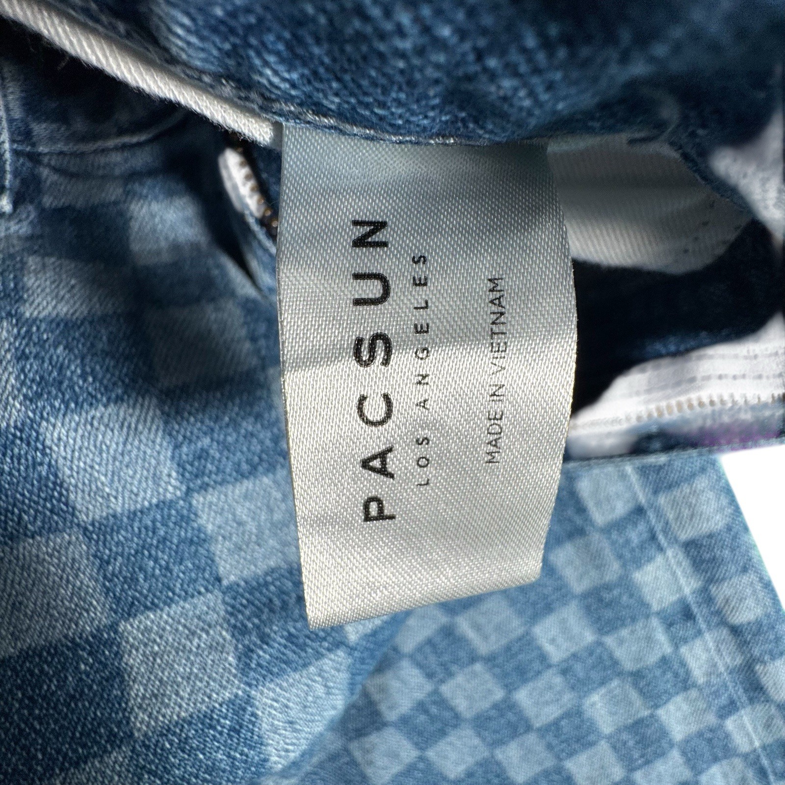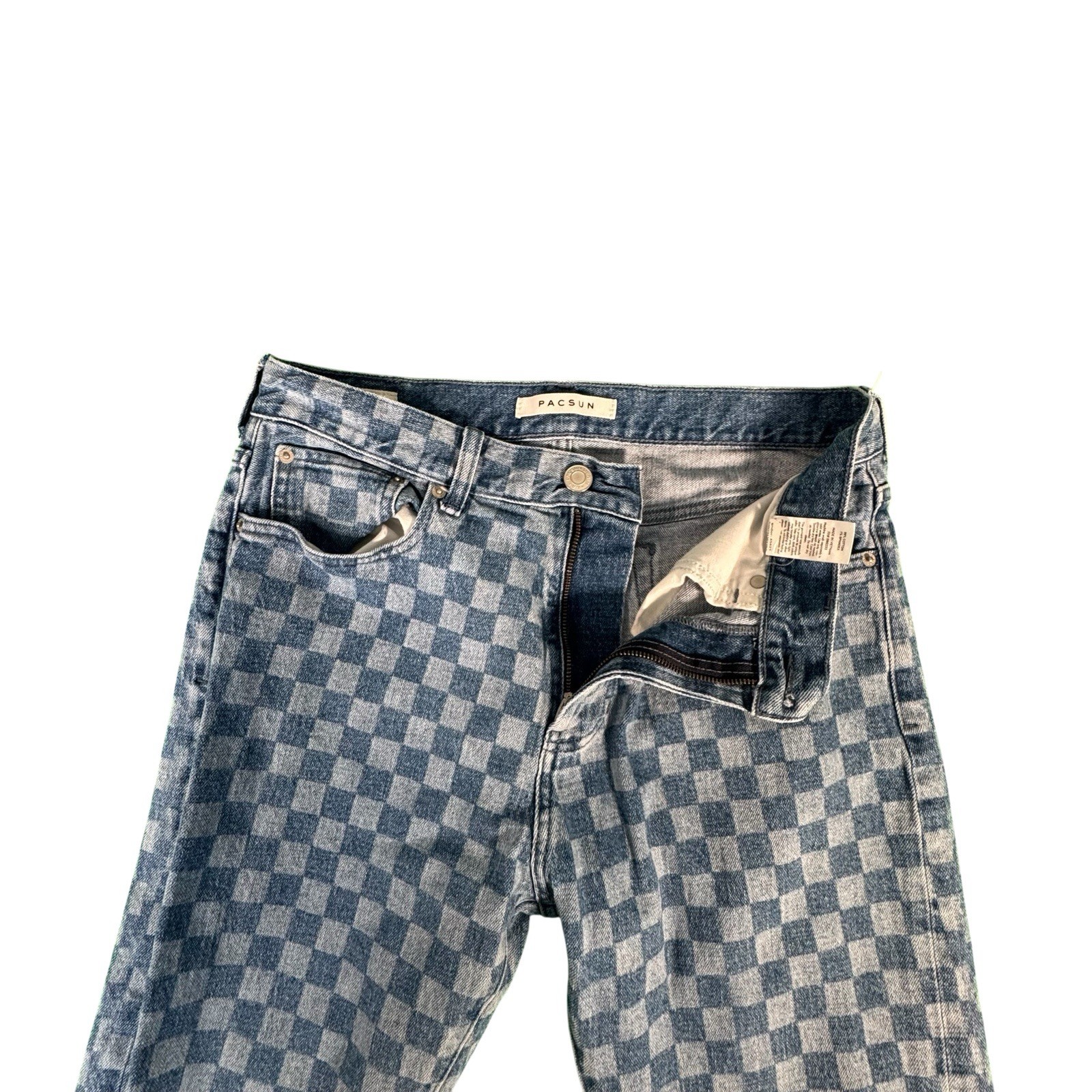как выглядит PacSun Slim Taper Jeans 32x32 Blue Checkerboard Denim Cotton Stretch фото
