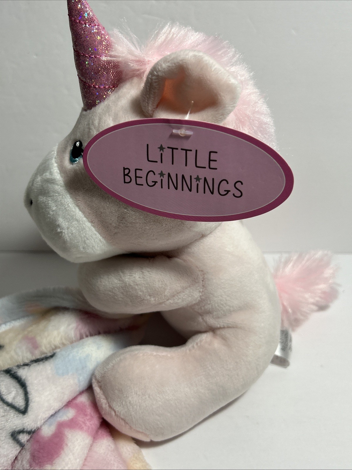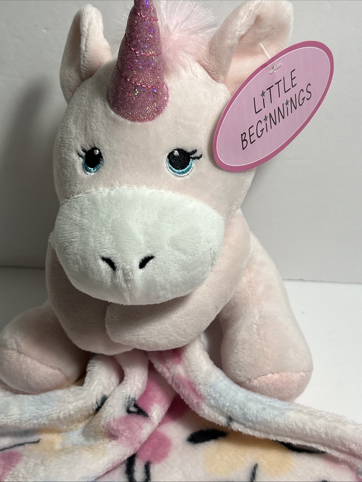 как выглядит Little Beginnings Unicorn Lovey Plush Security Blanket Pink Stuffed Toy Floral фото
